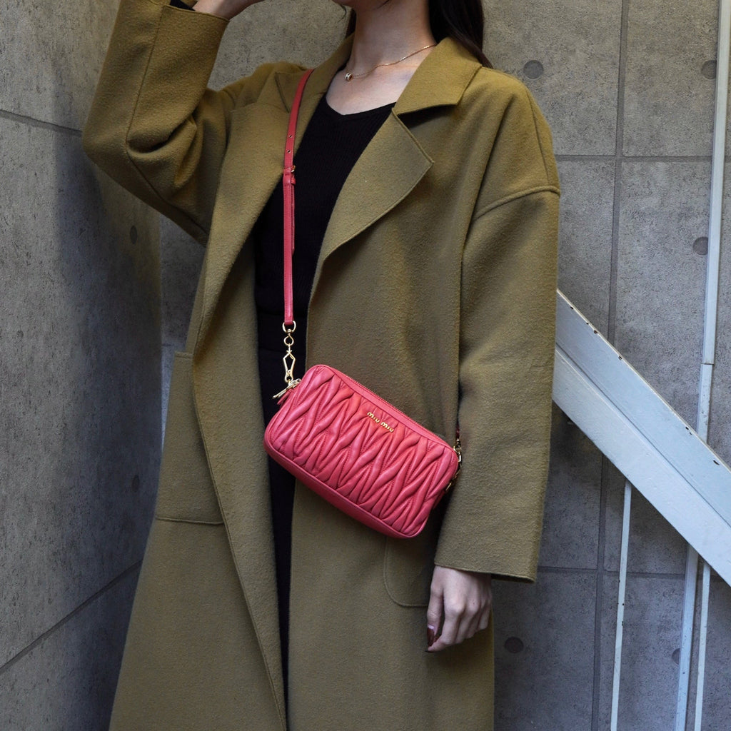 高さ:約12cm (中央) 横幅:約21cm (底面) マチ:約6.5cm ショルダー紐の長さ:約111cm~約131cm 500mlペットボトル:× A4ファイル:× サイズガイドはこちら