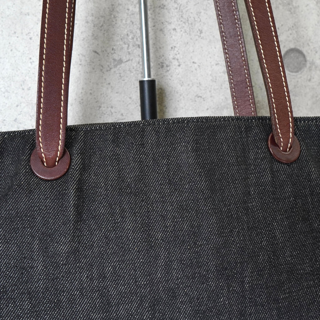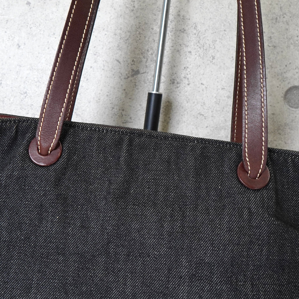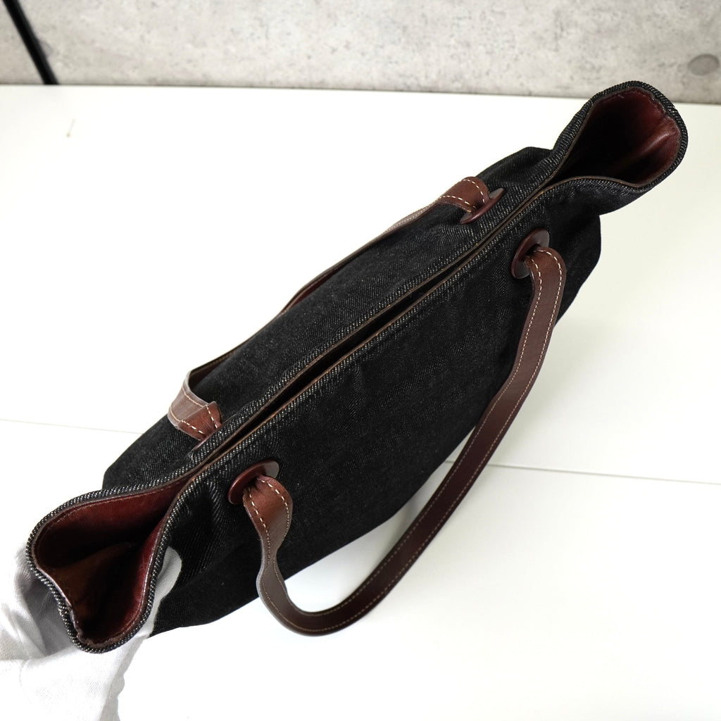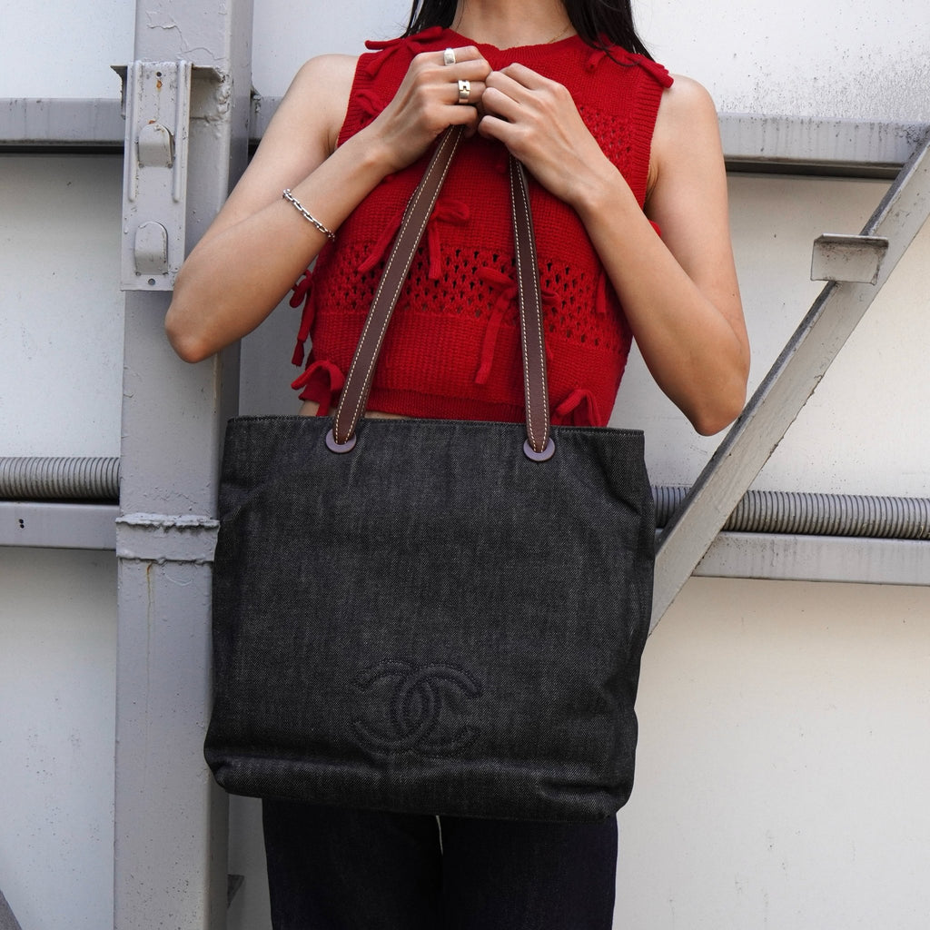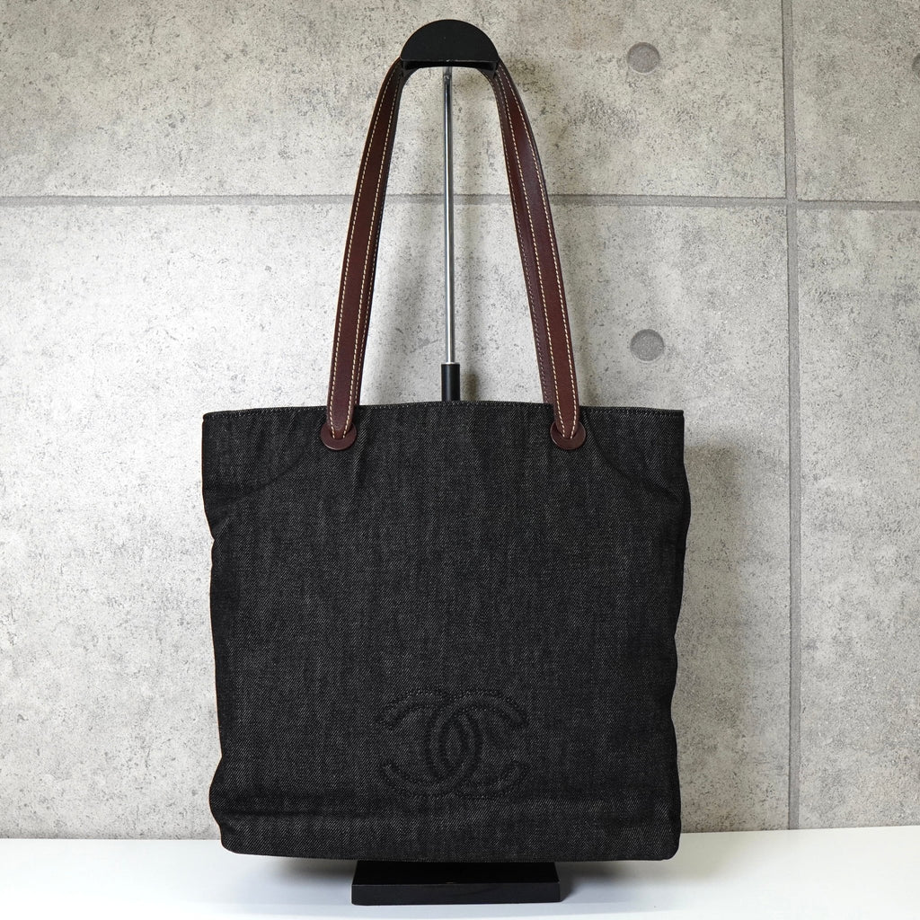 シャネル ココマーク デニム / レザー トートバッグ ブラック / ブラウン