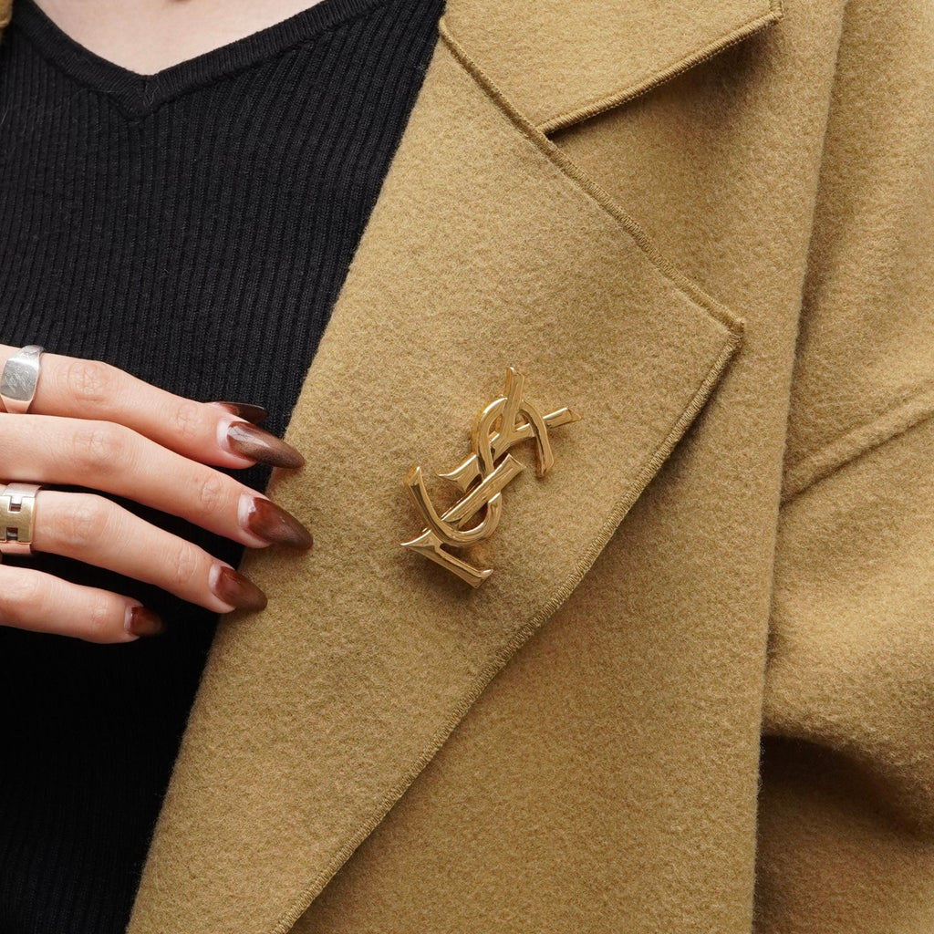 イヴサンローラン YSLロゴ ブローチ GP 箱付き