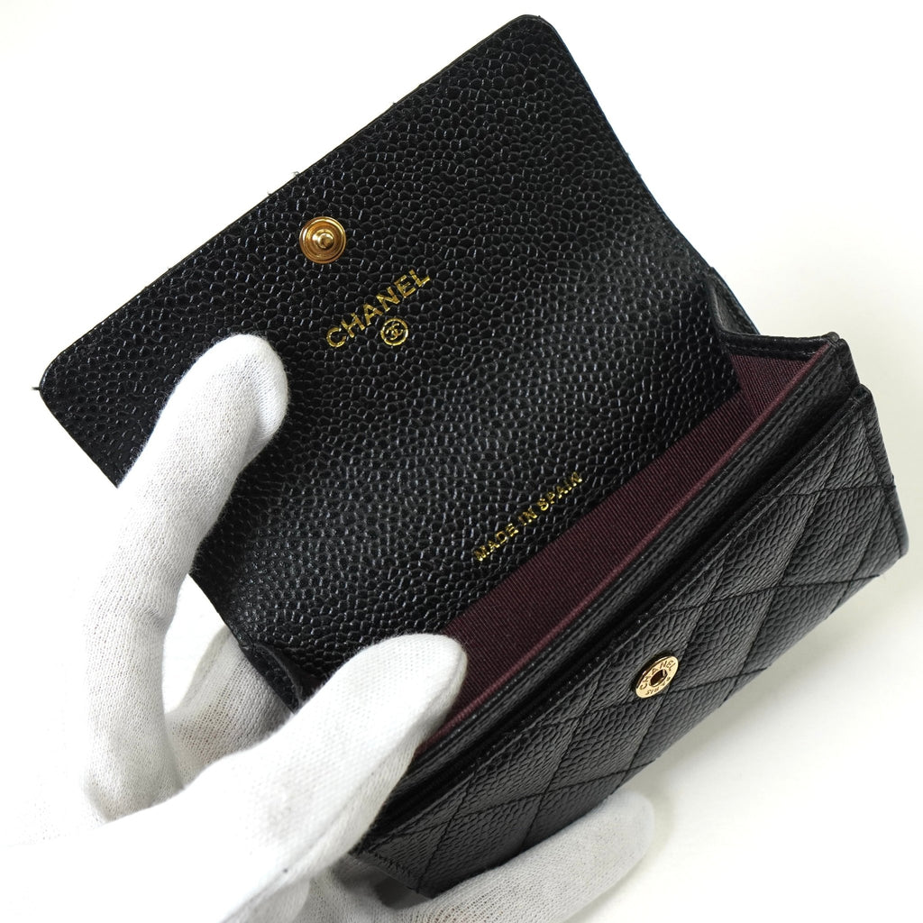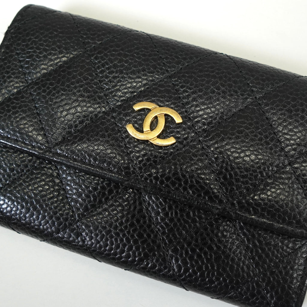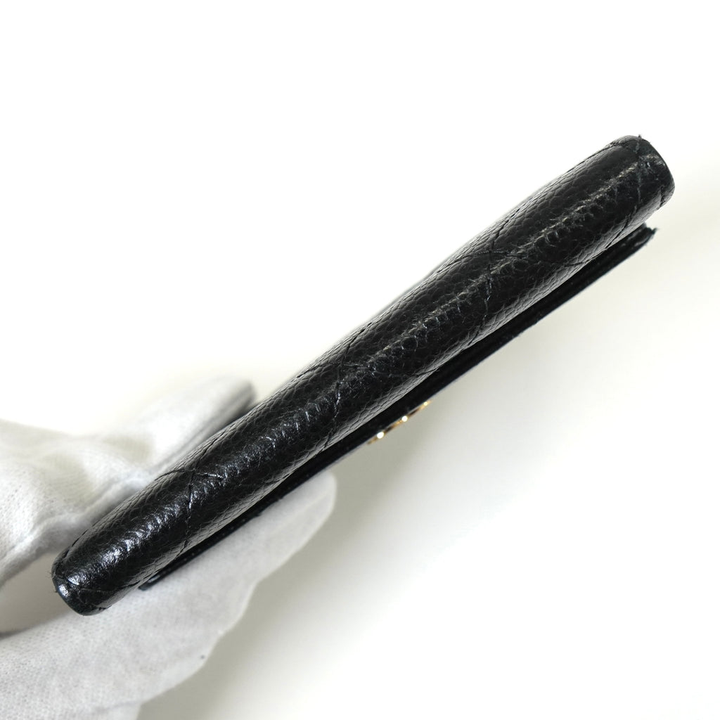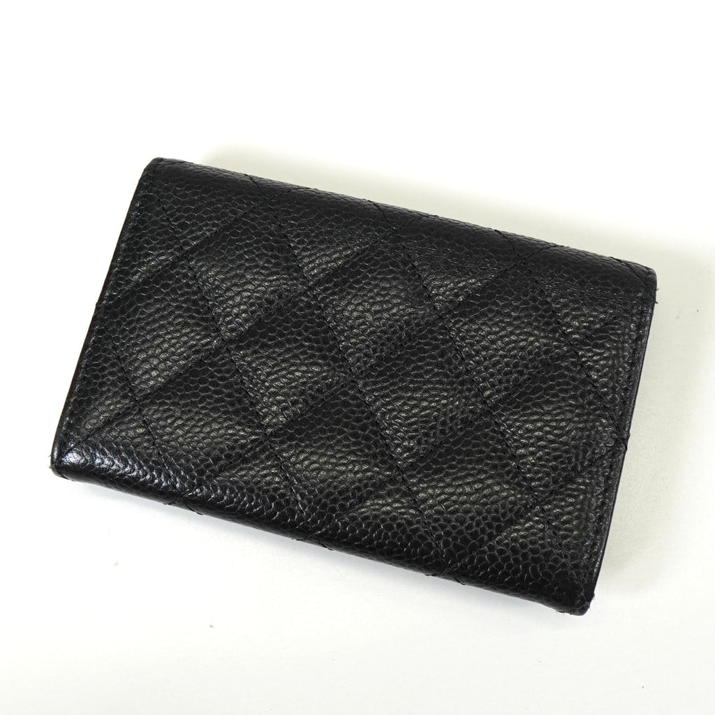 シャネル 1番台 ココマーク マトラッセ キャビアスキン カードケース ブラック
