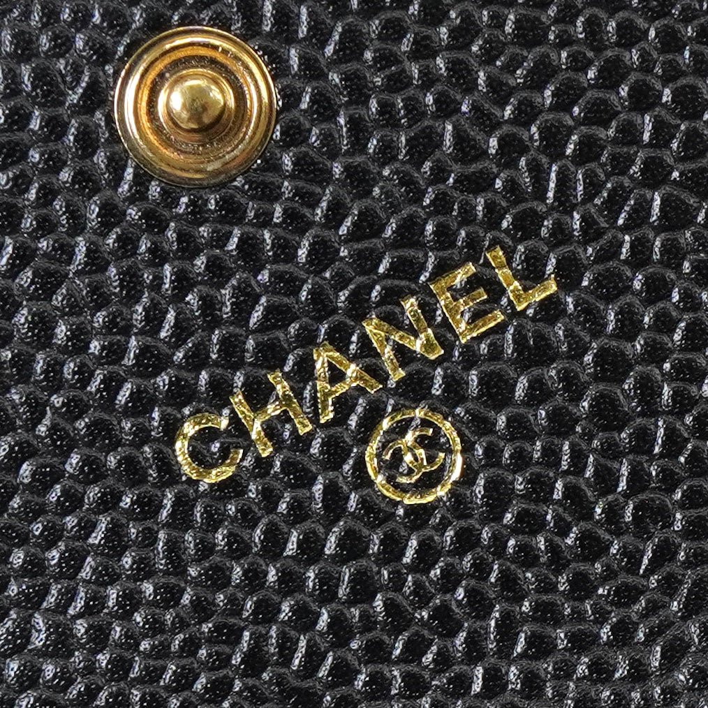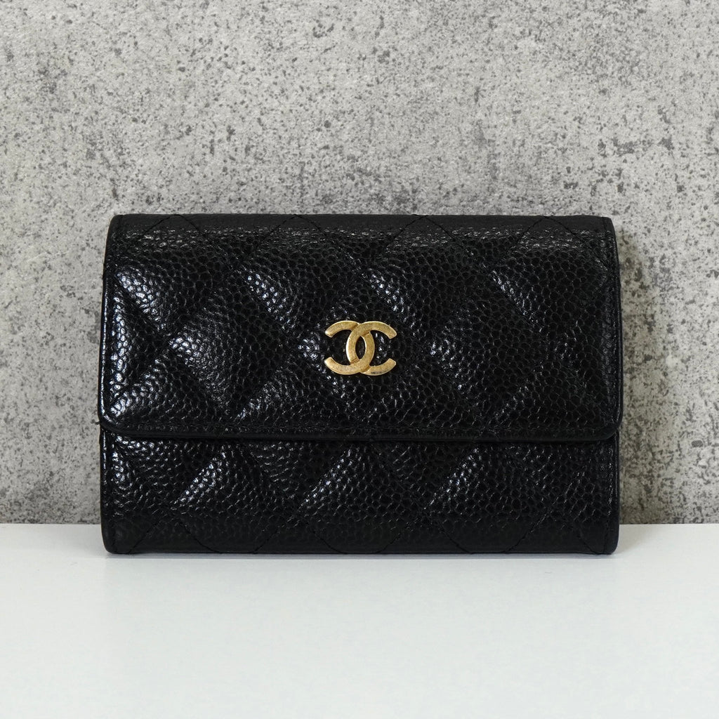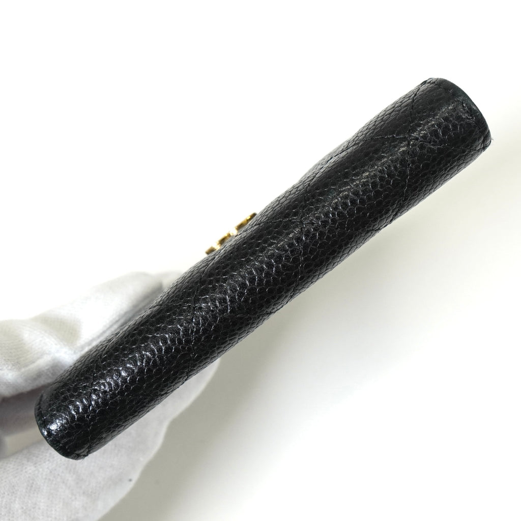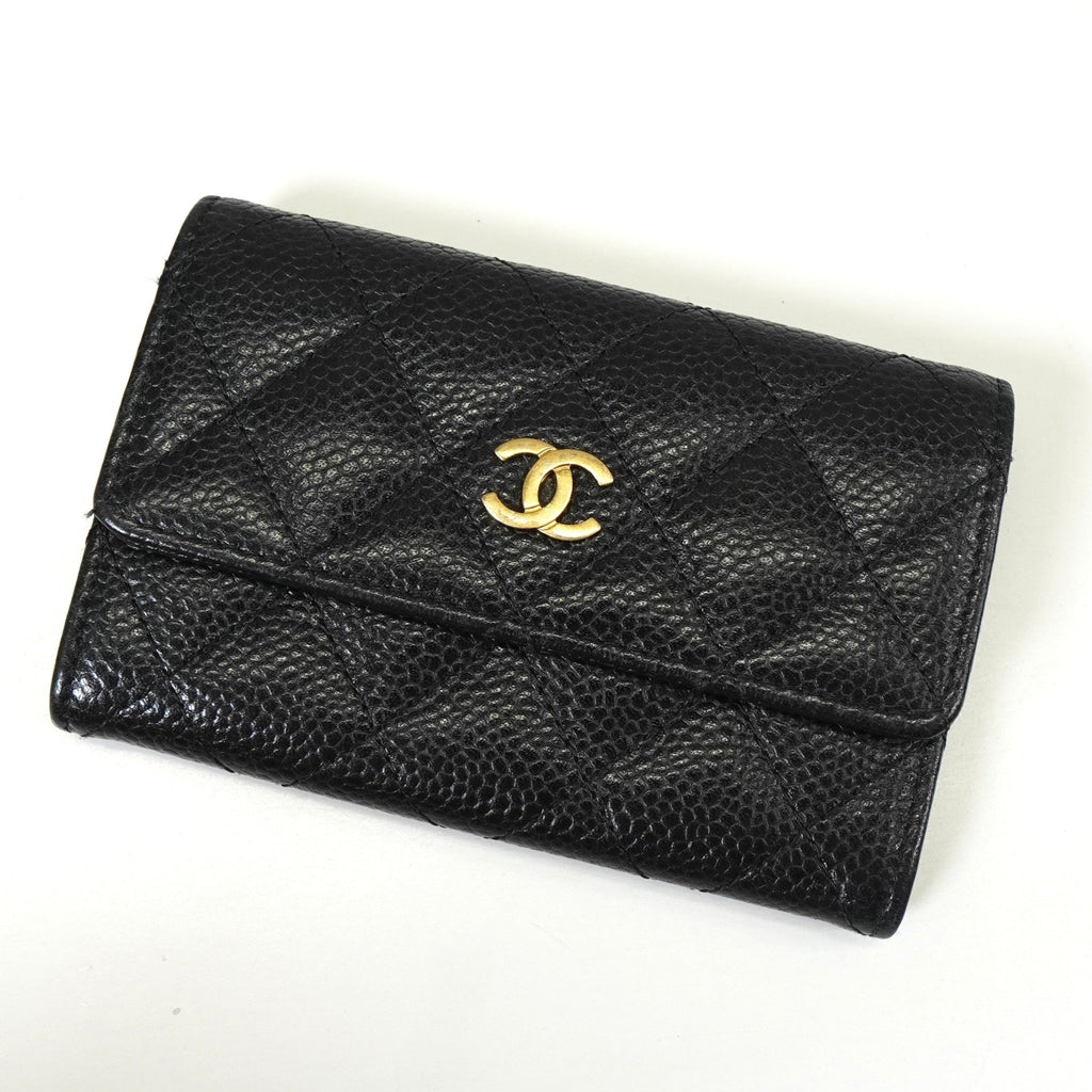シャネル 1番台 ココマーク マトラッセ キャビアスキン カードケース ブラック
