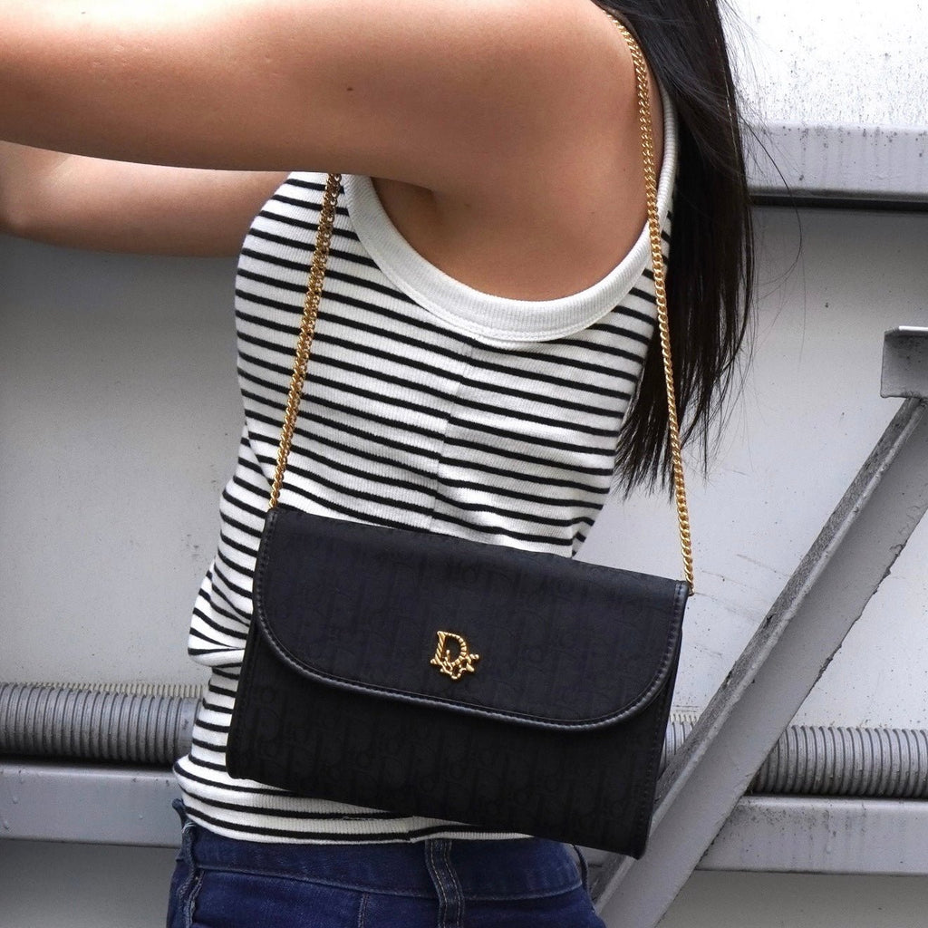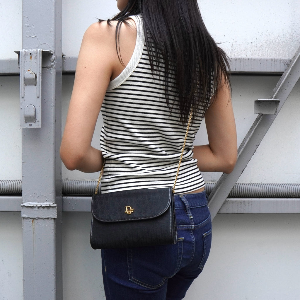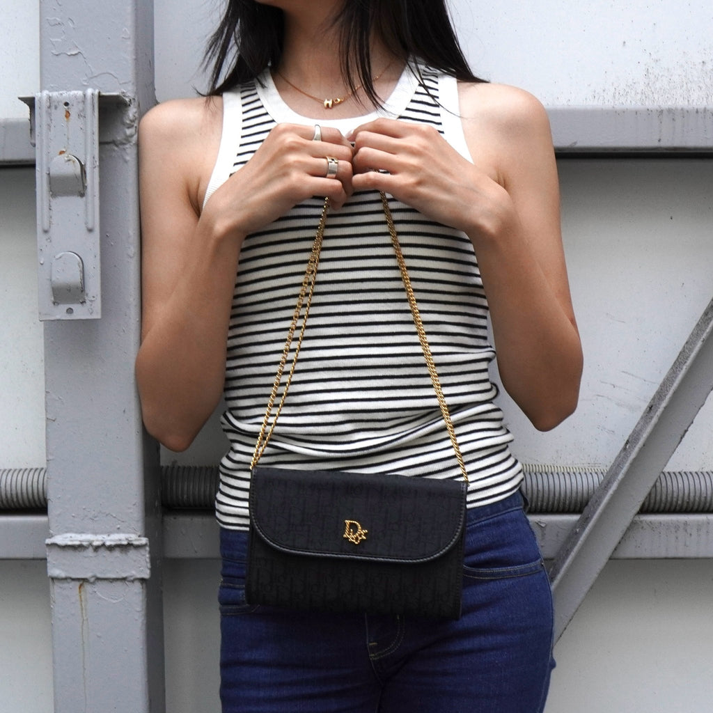 クリスチャン ディオール トロッター 2way ナイロンキャンバス チェーン ショルダーバッグ ブラック