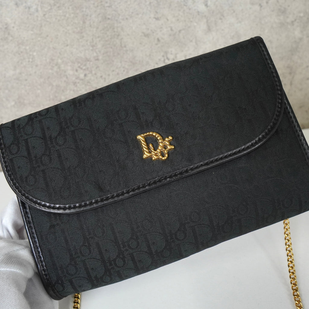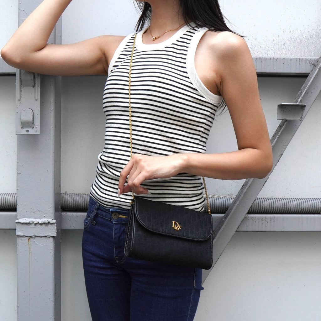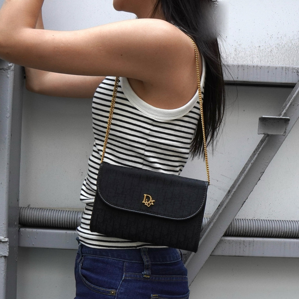 クリスチャン ディオール トロッター 2way ナイロンキャンバス チェーン ショルダーバッグ ブラック