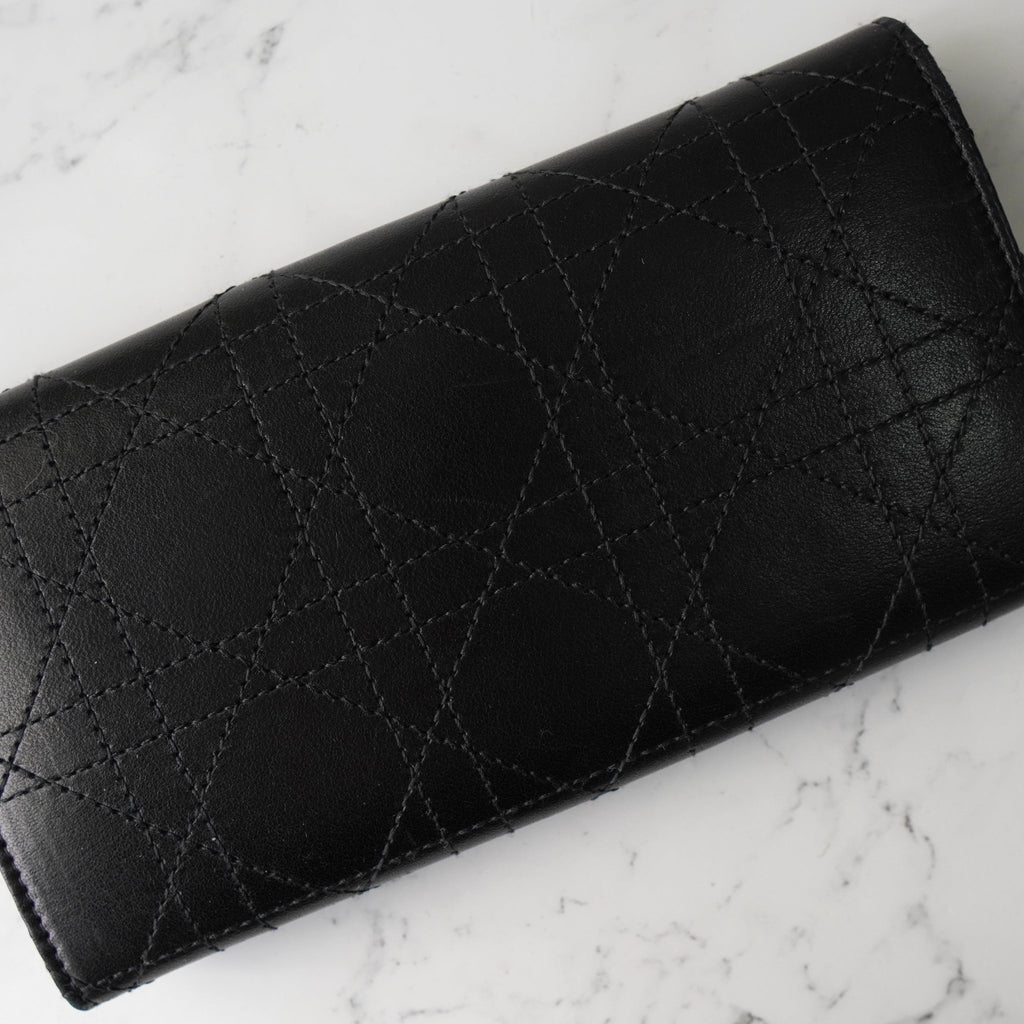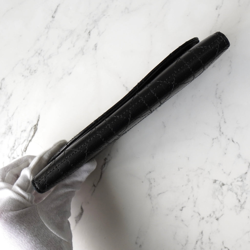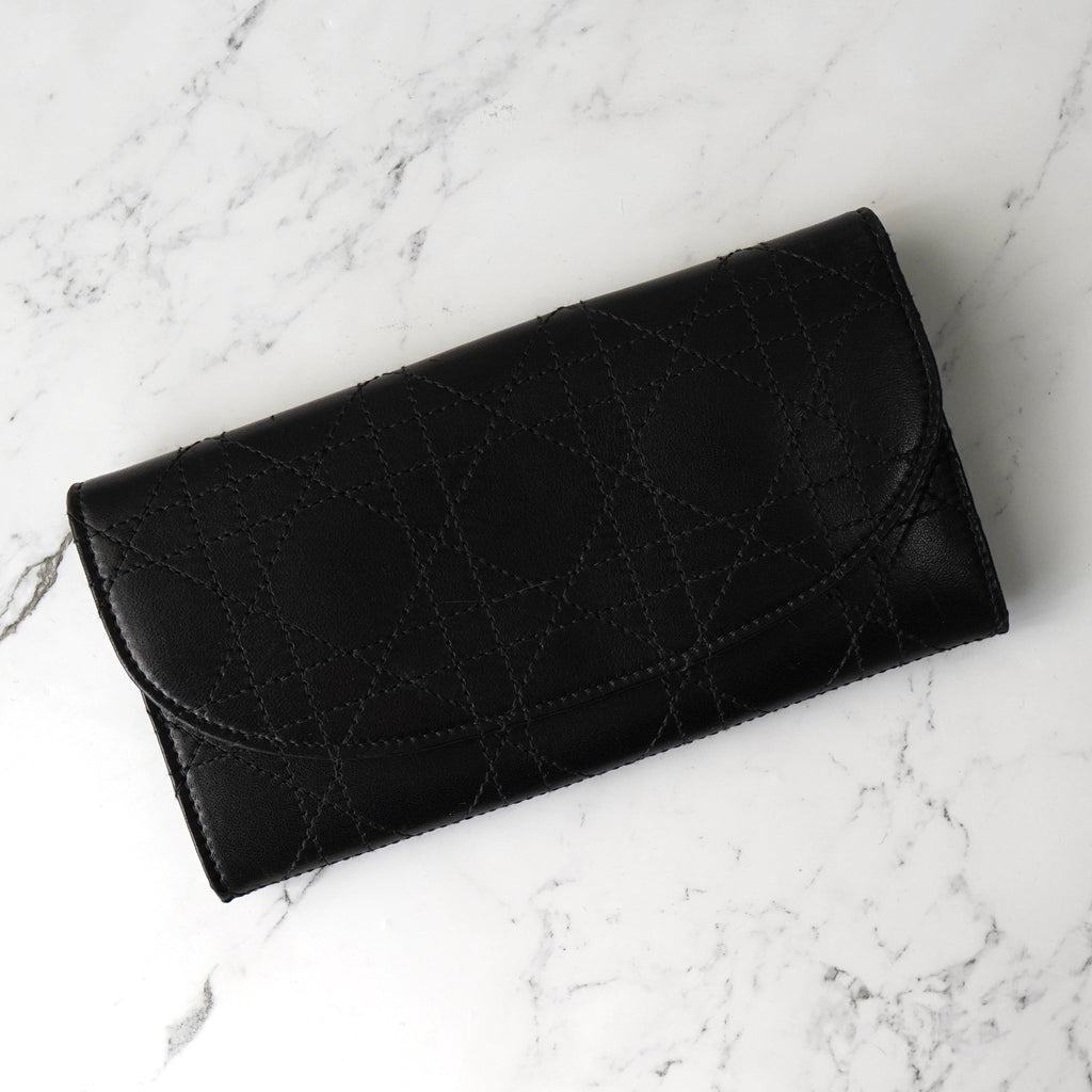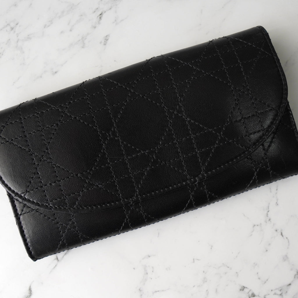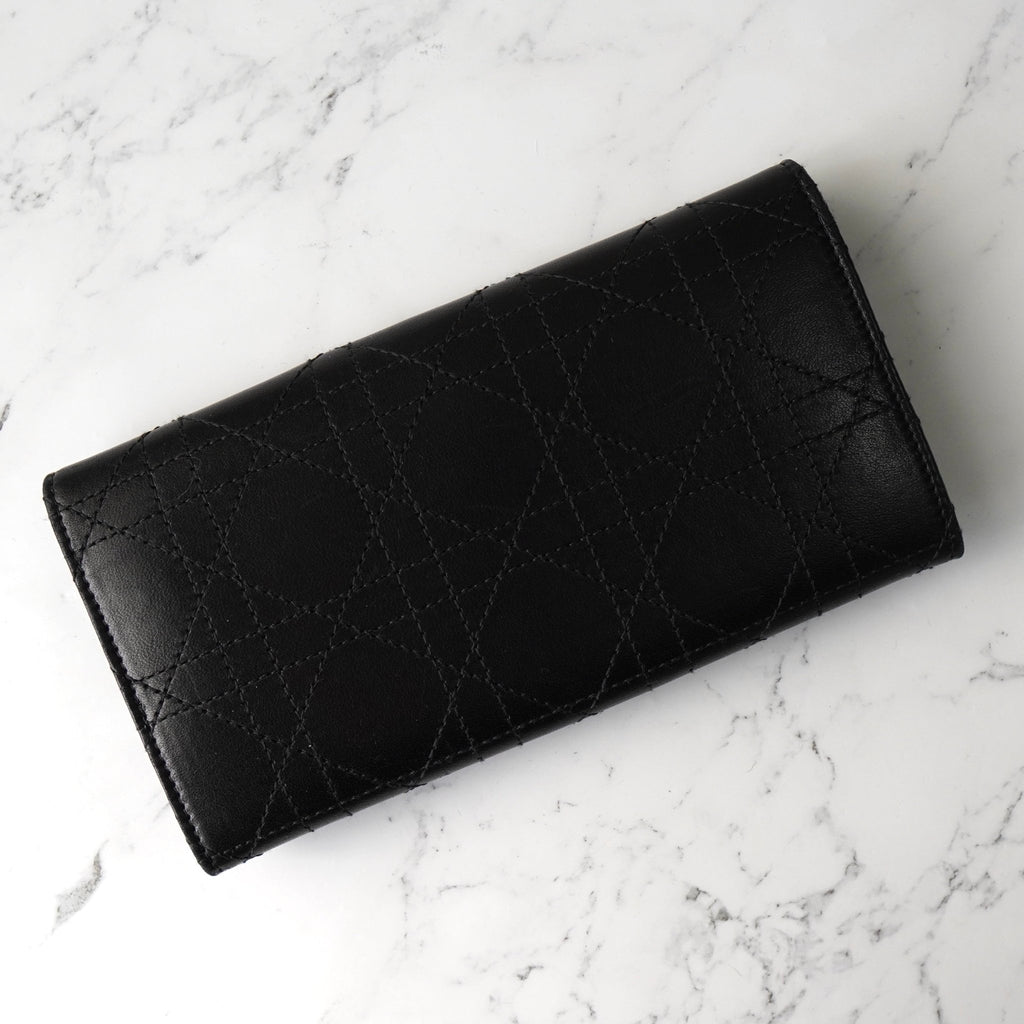 ディオール カナージュ レザー フラップ 長財布 二つ折り財布 ブラック