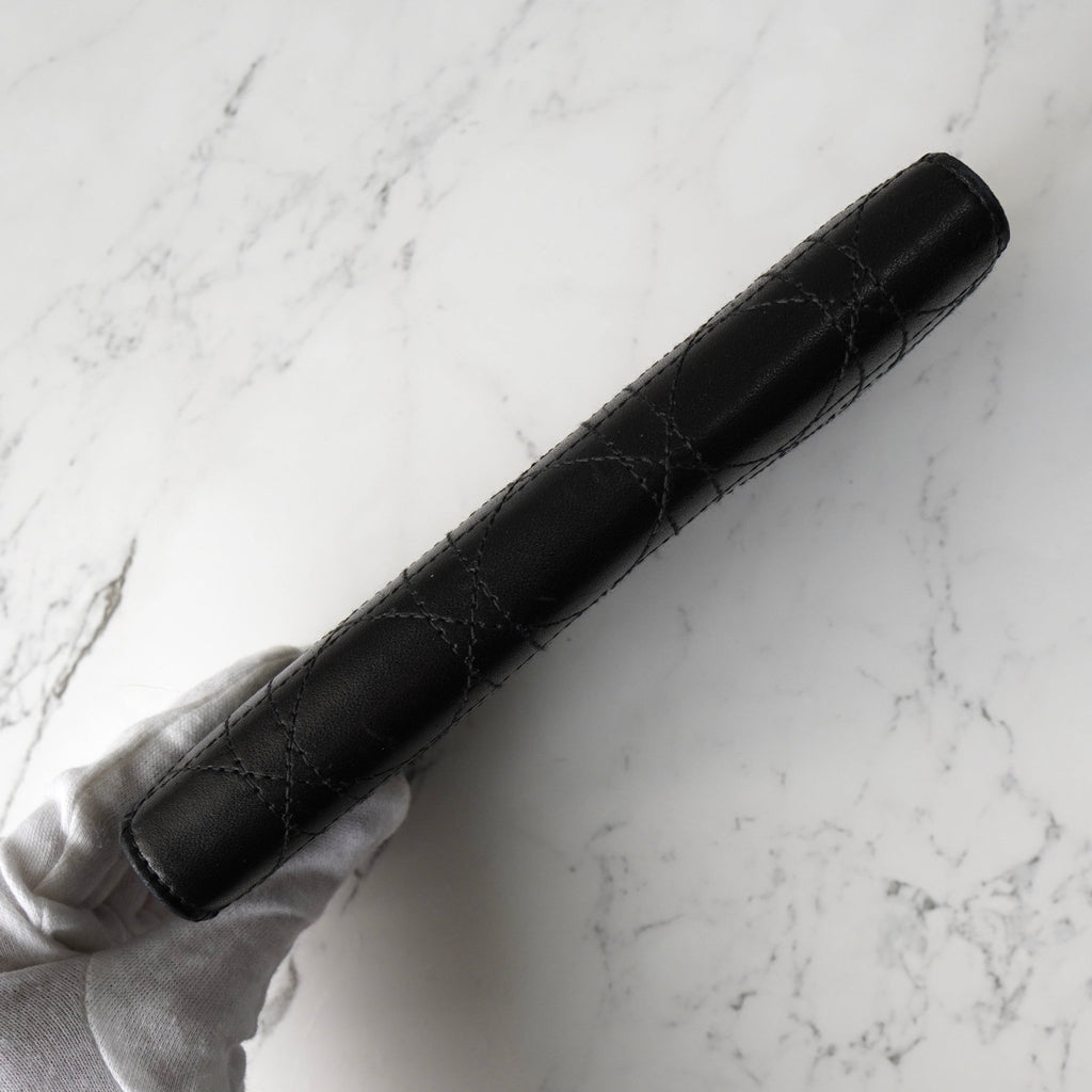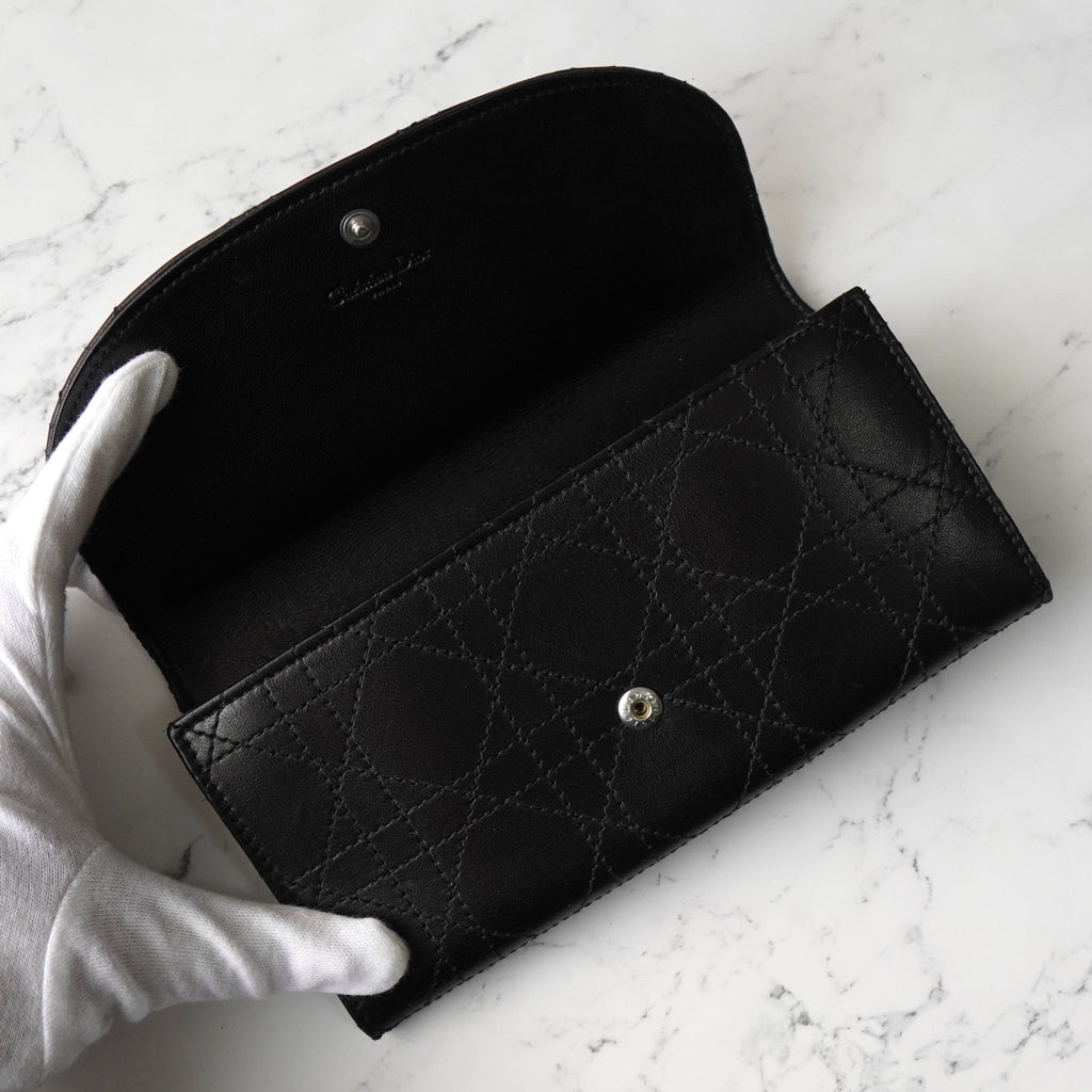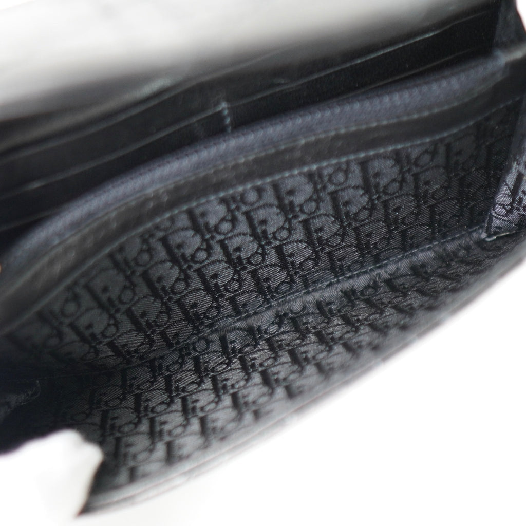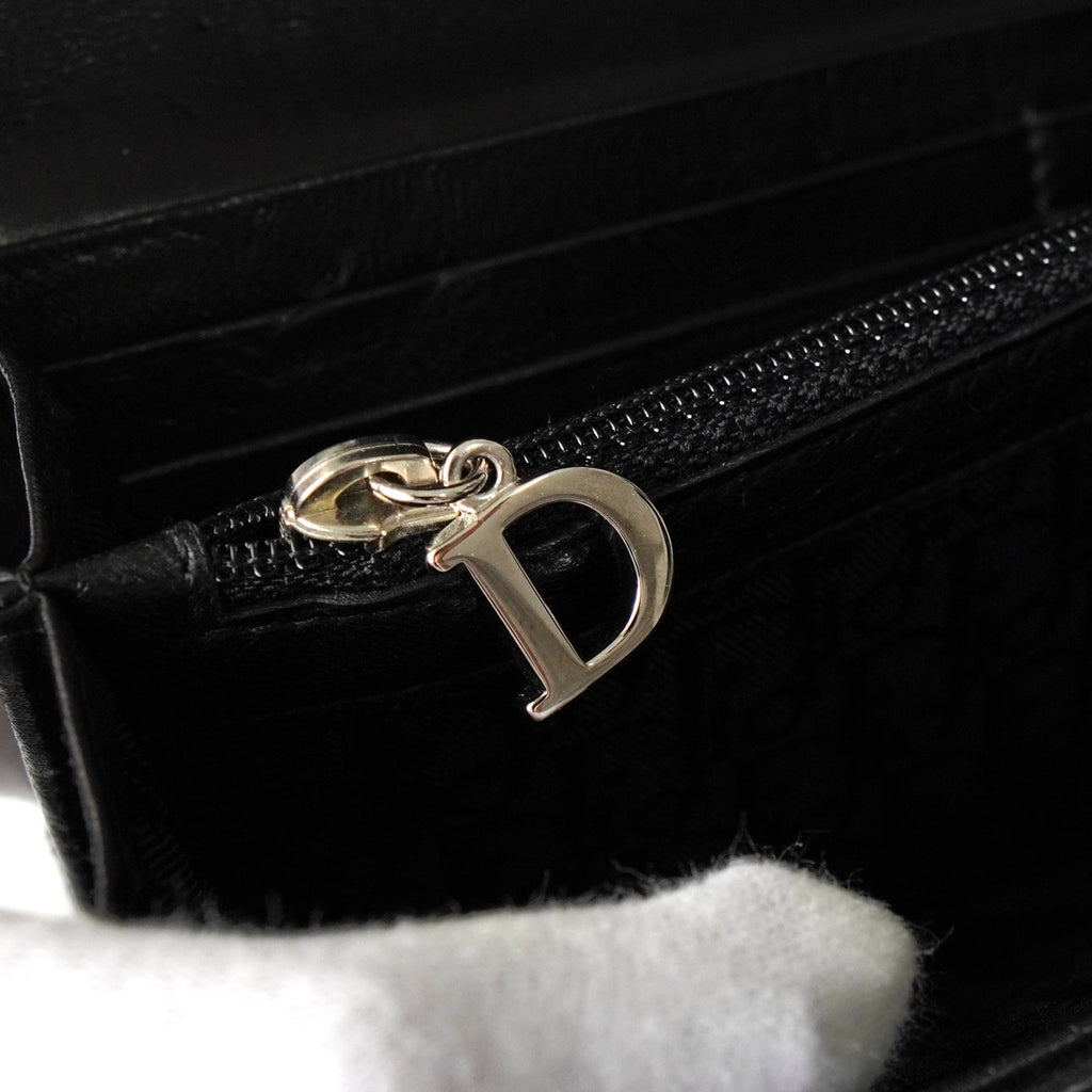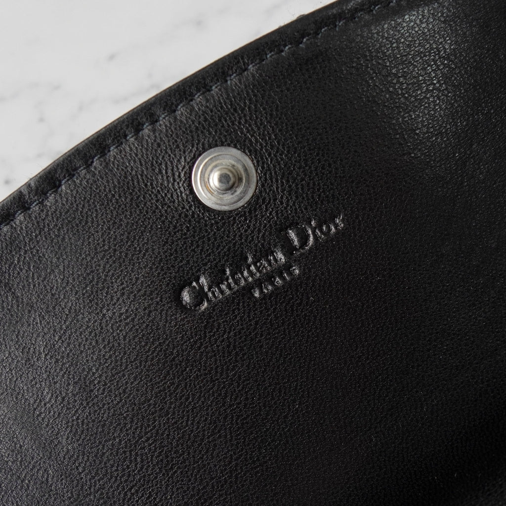 ディオール カナージュ レザー フラップ 長財布 二つ折り財布 ブラック