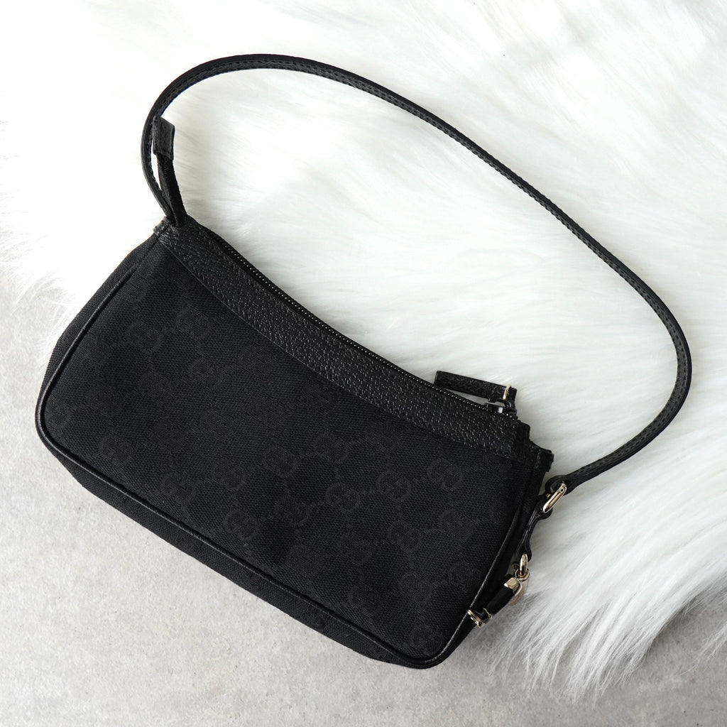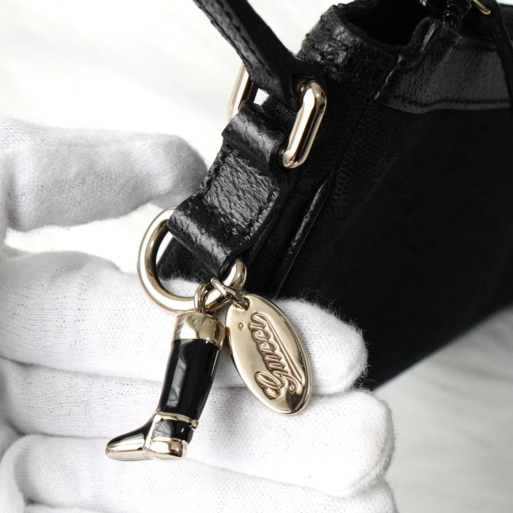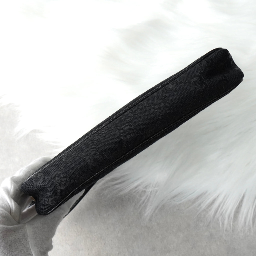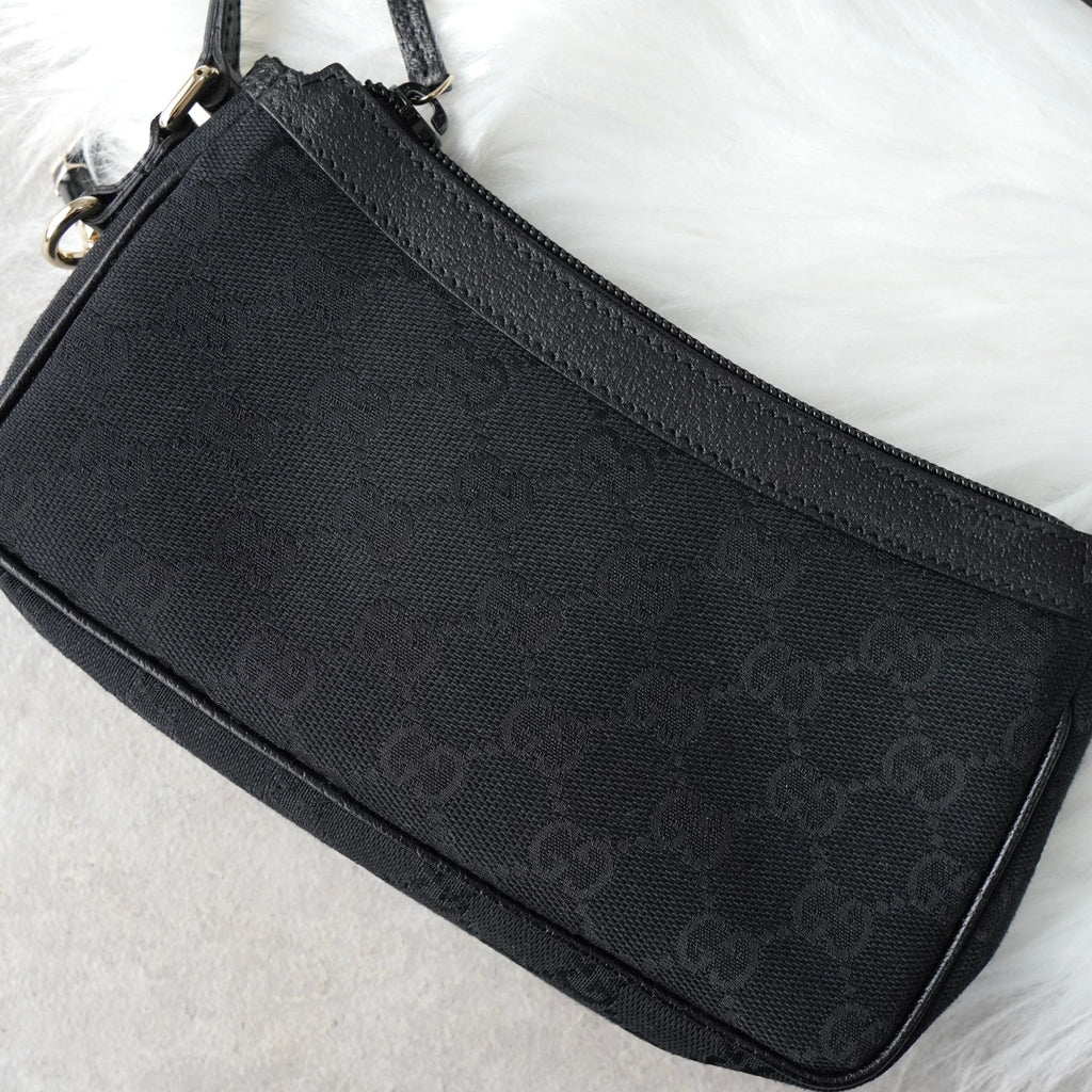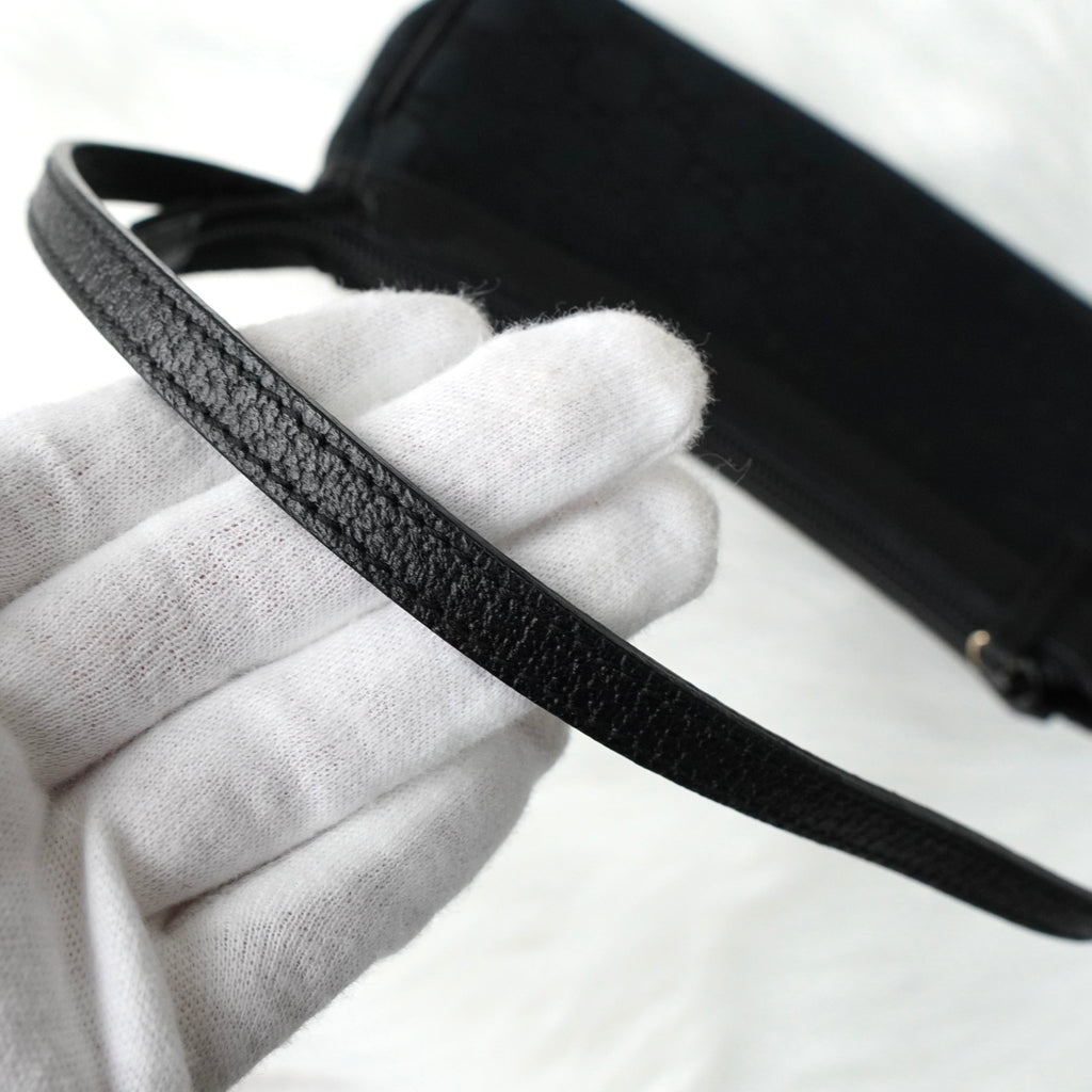グッチ GGキャンバス / レザー ミニ ハンドバッグ アクセサリーポーチ ブラック