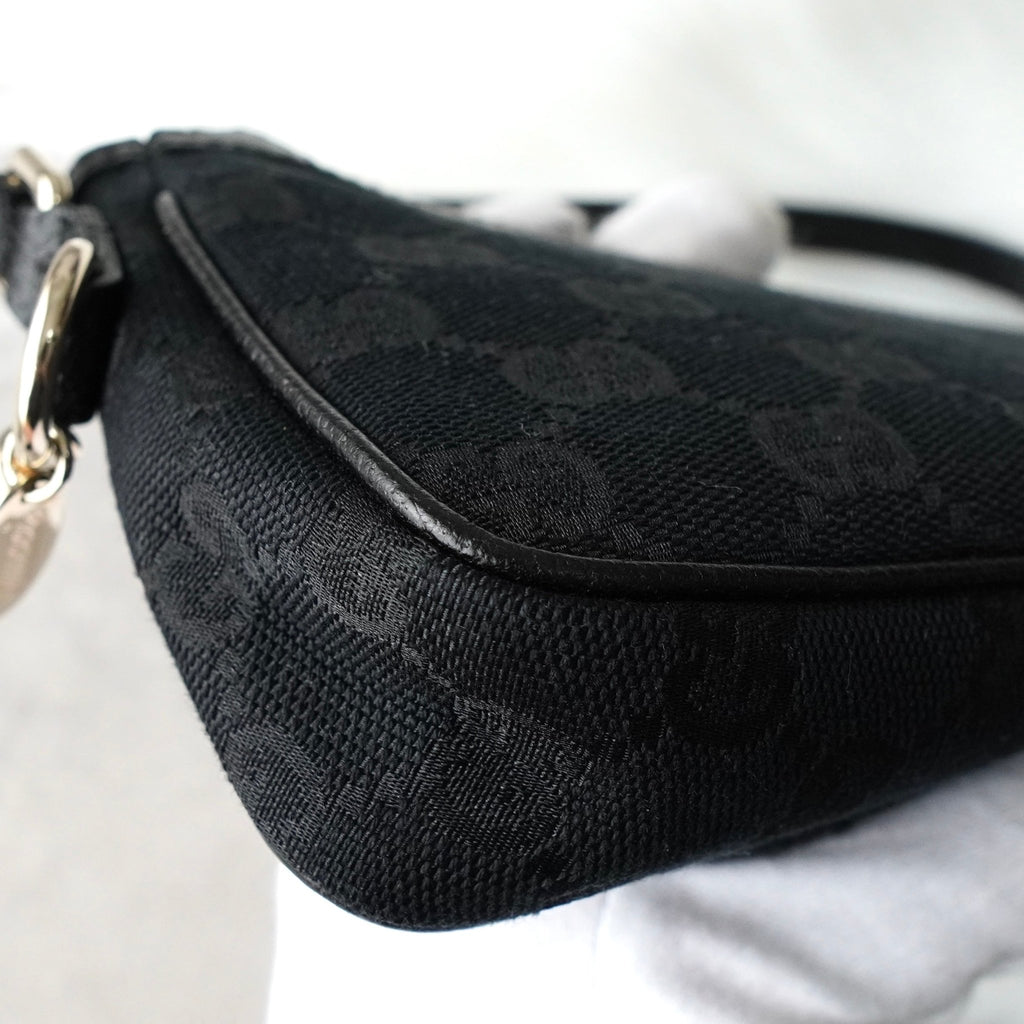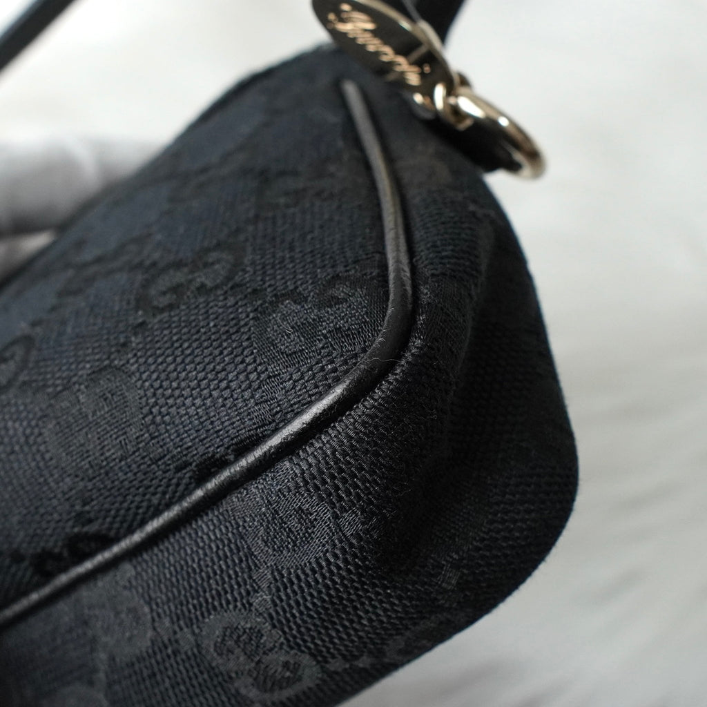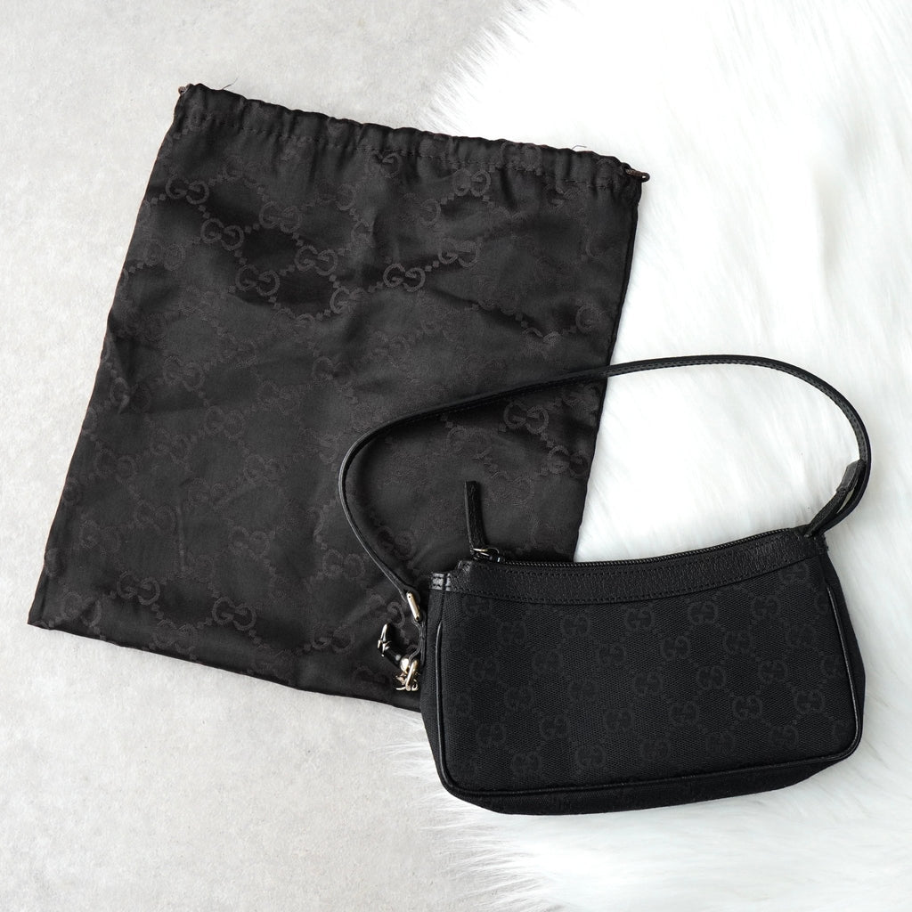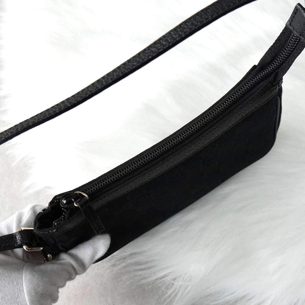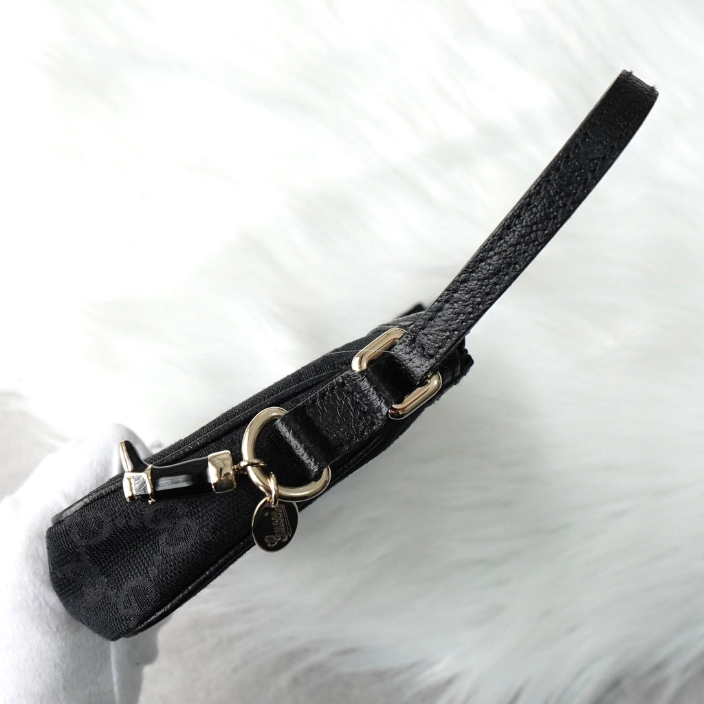 グッチ GGキャンバス / レザー ミニ ハンドバッグ アクセサリーポーチ ブラック