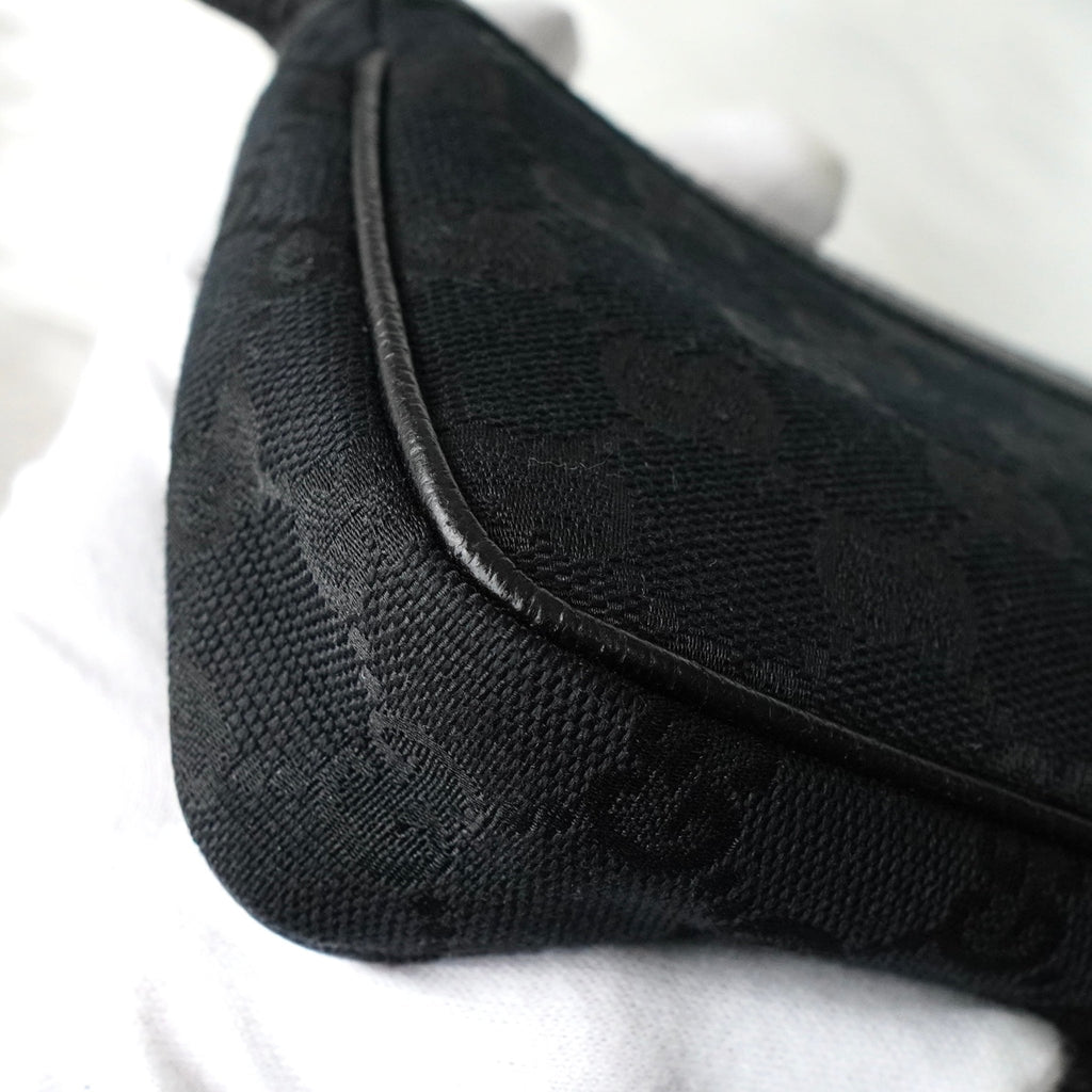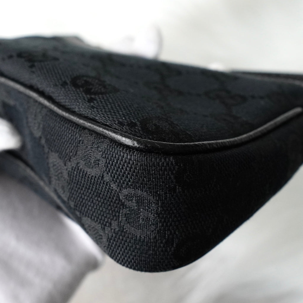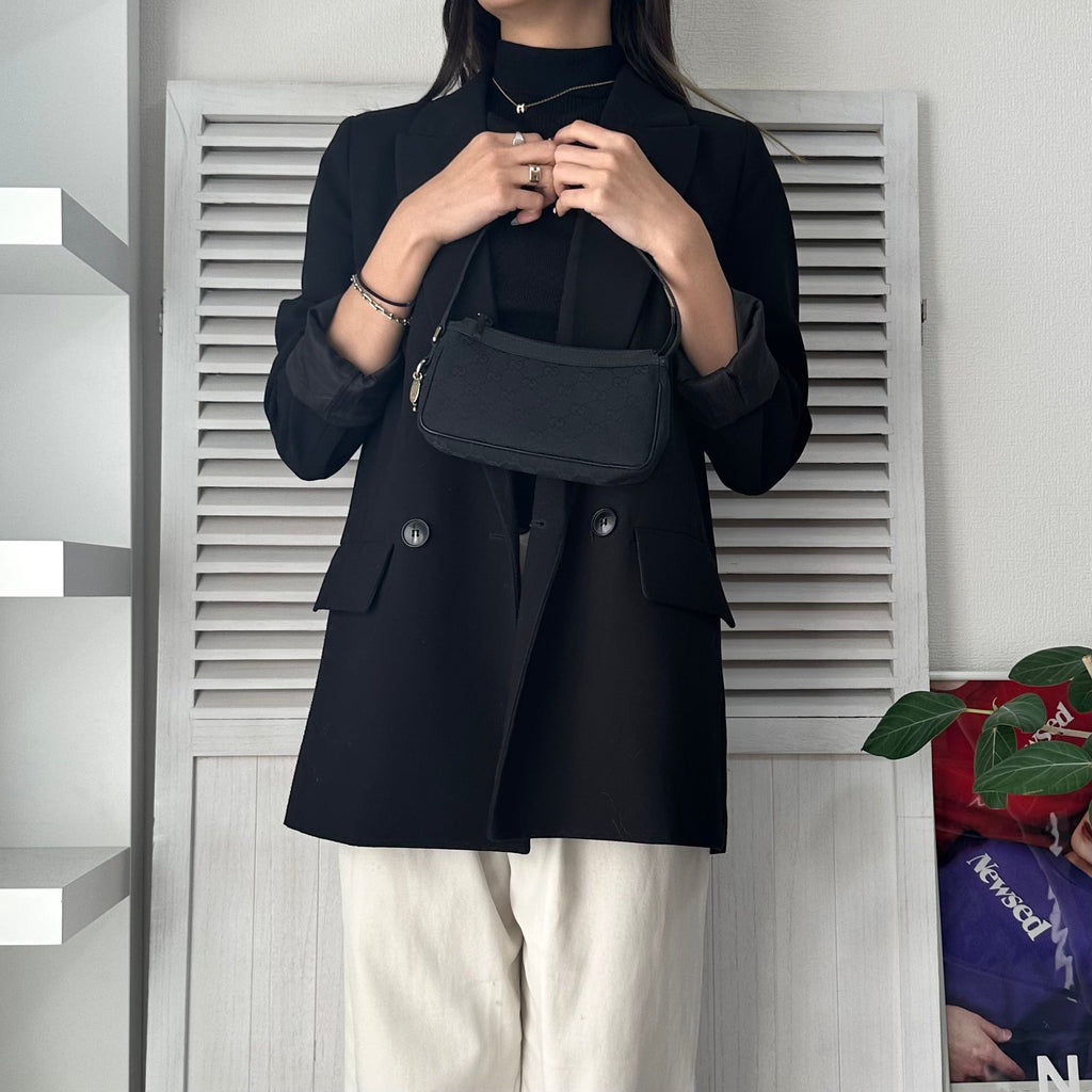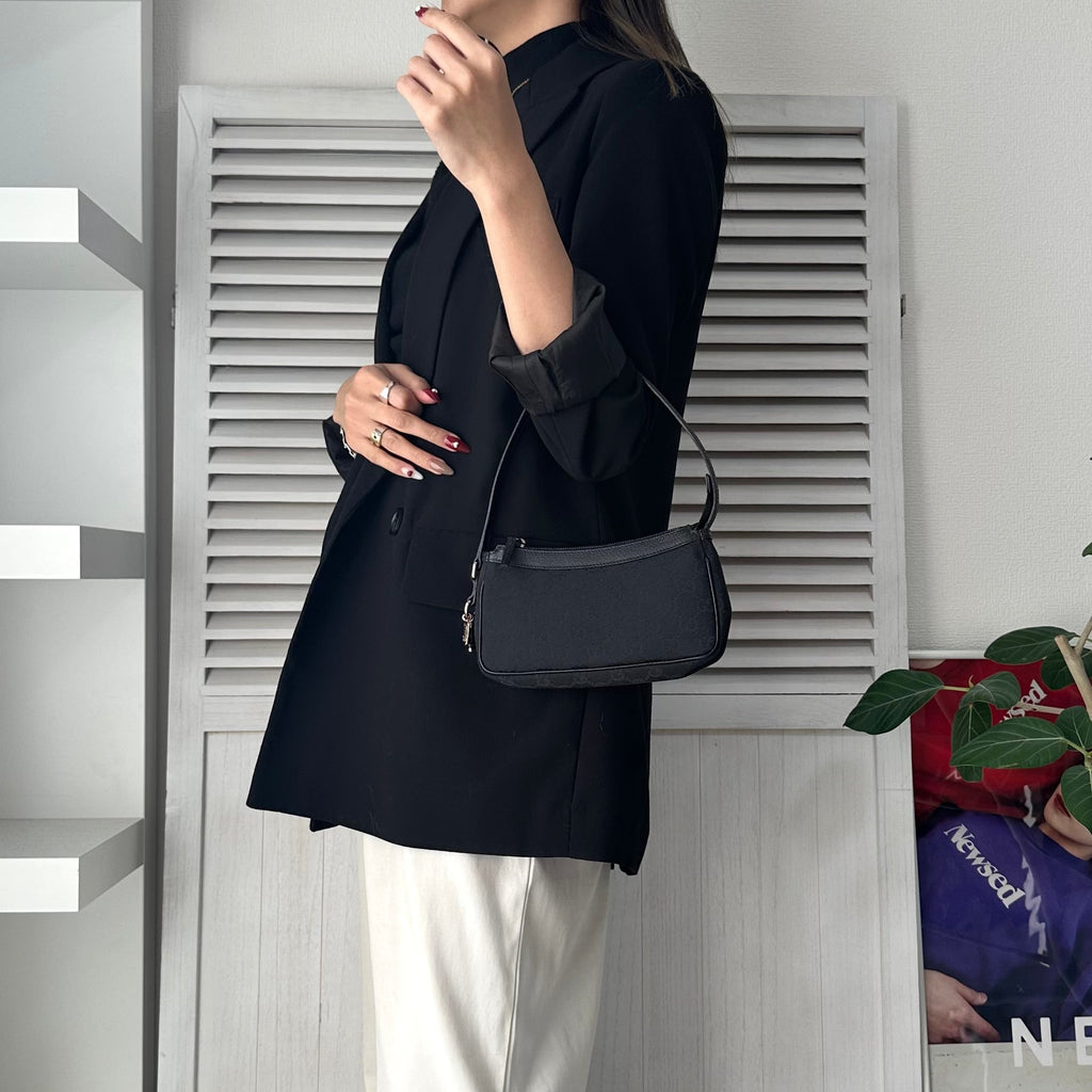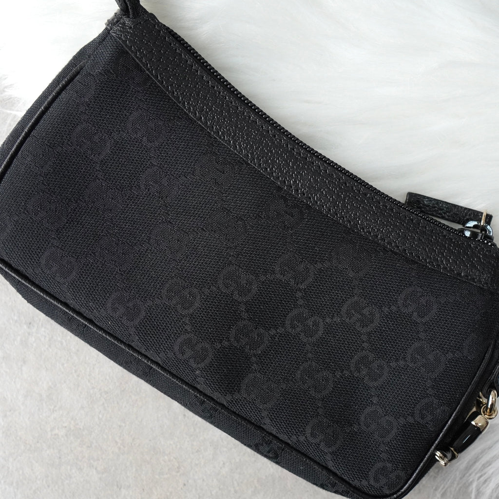 グッチ GGキャンバス / レザー ミニ ハンドバッグ アクセサリーポーチ ブラック
