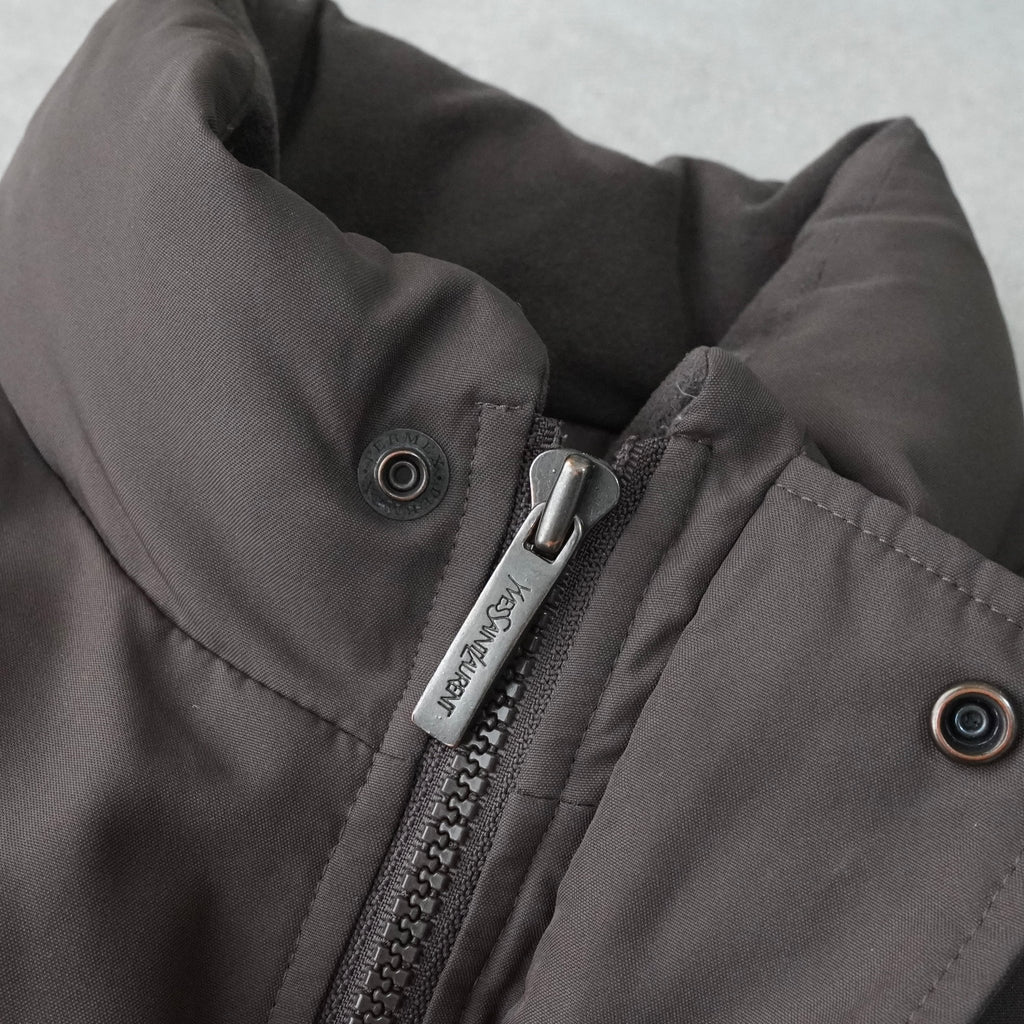 イヴ サンローラン 1990's ヴィンテージ YSLロゴ 中綿ジャケット チャコール グレージュ
