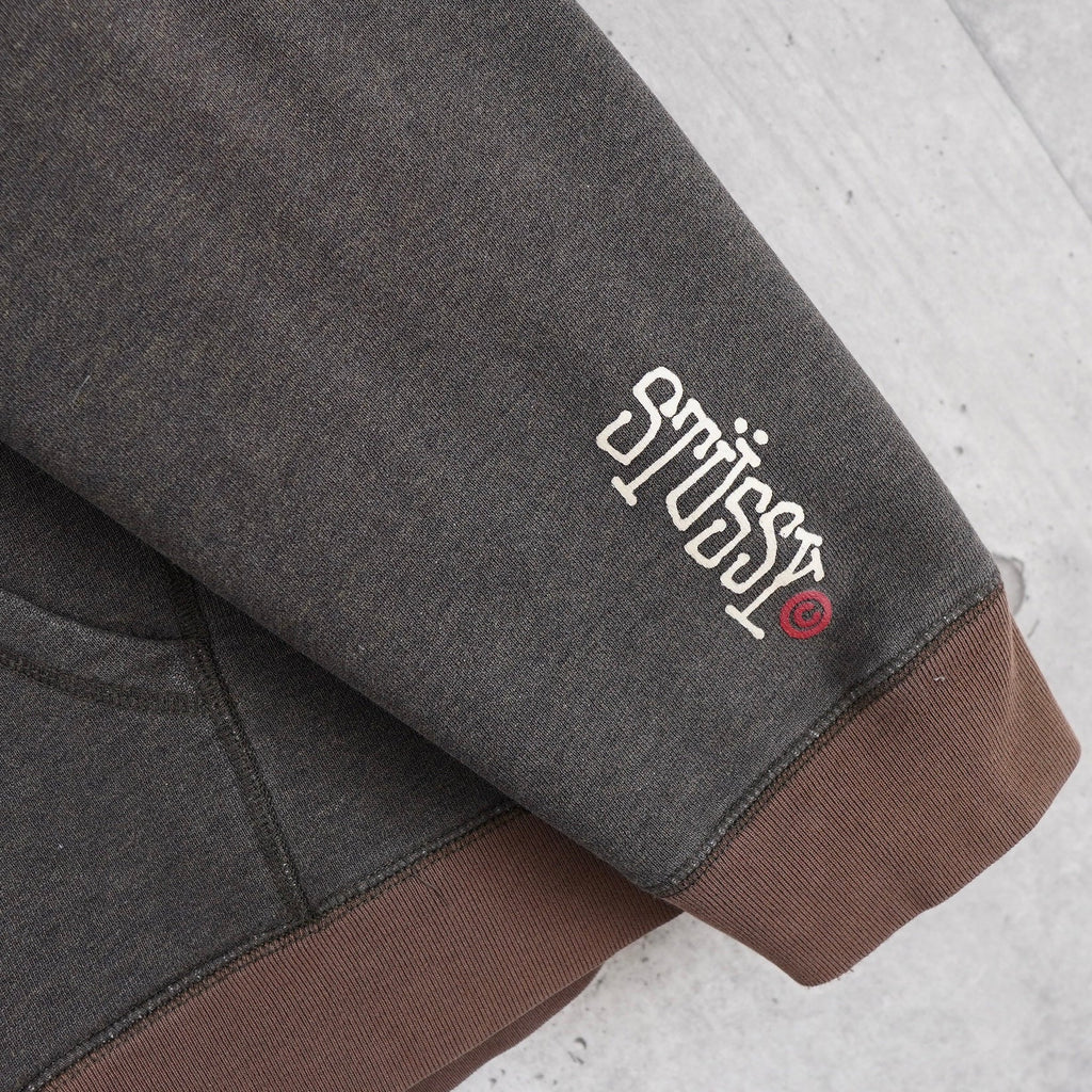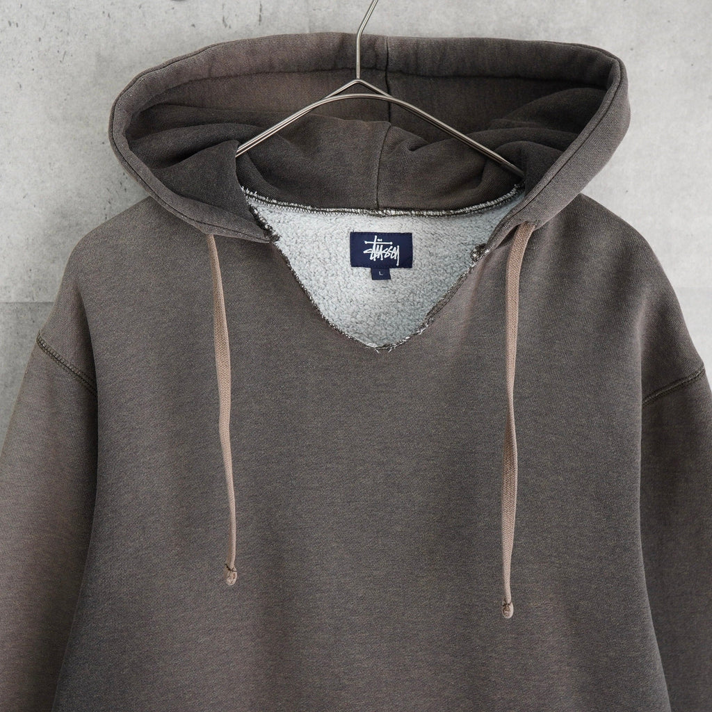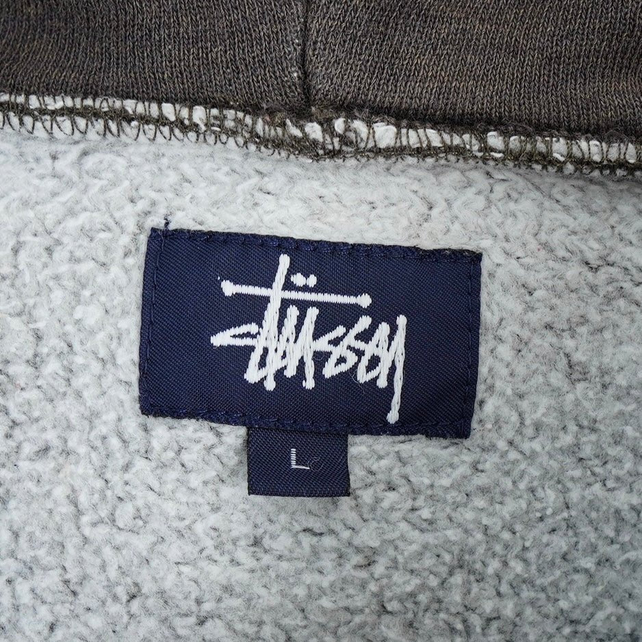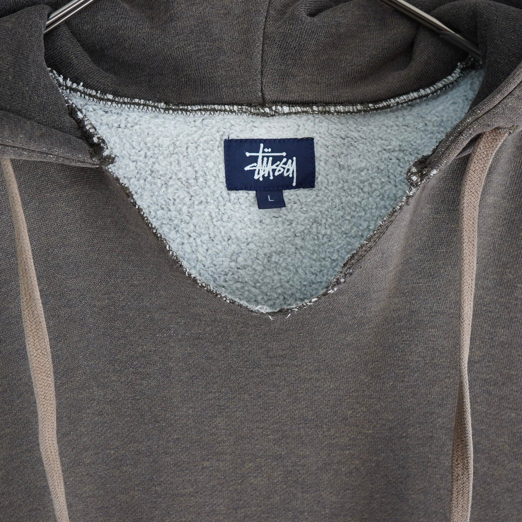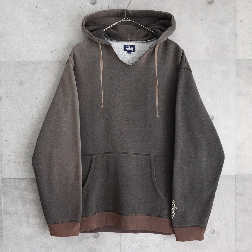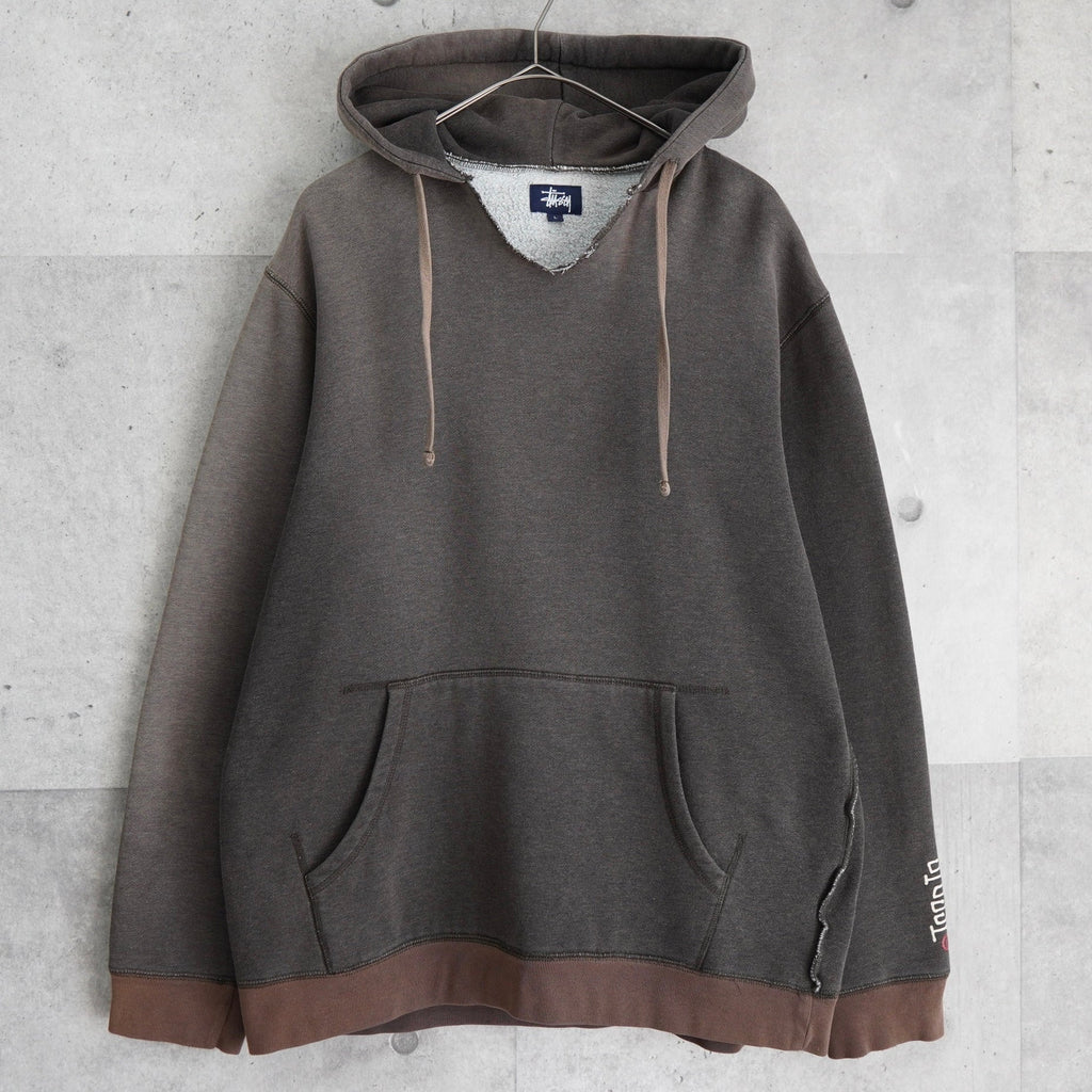 ステューシー ダメージ加工 リメイク サンフェード パーカー ロゴ プリント グレー / ブラウン