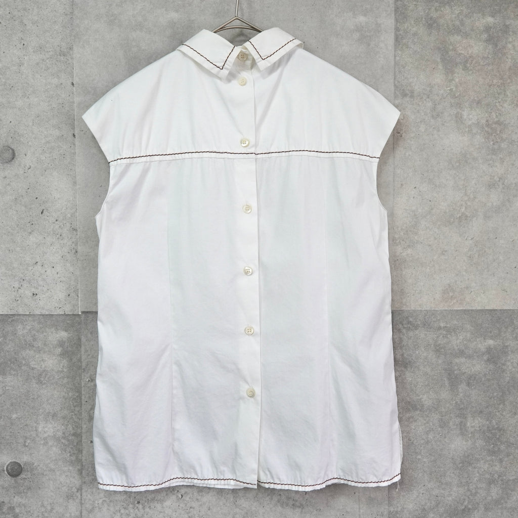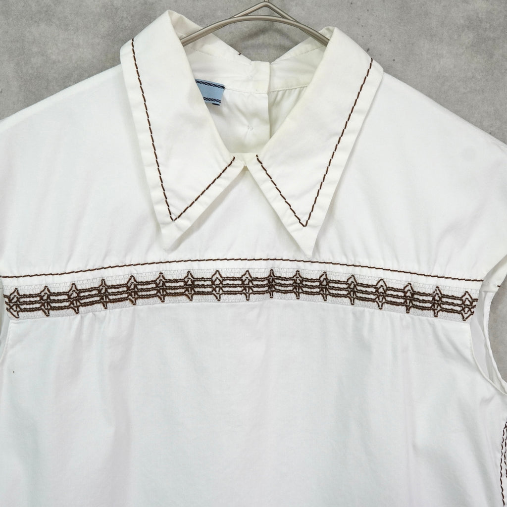 プラダ 刺繍 ノースリーブ シャツ ブラウス ホワイト レディース