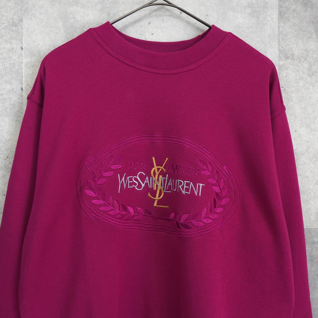 イヴサンローラン ヴィンテージ YSLロゴ 刺繍 スウェット ピンクパープル デッドストック