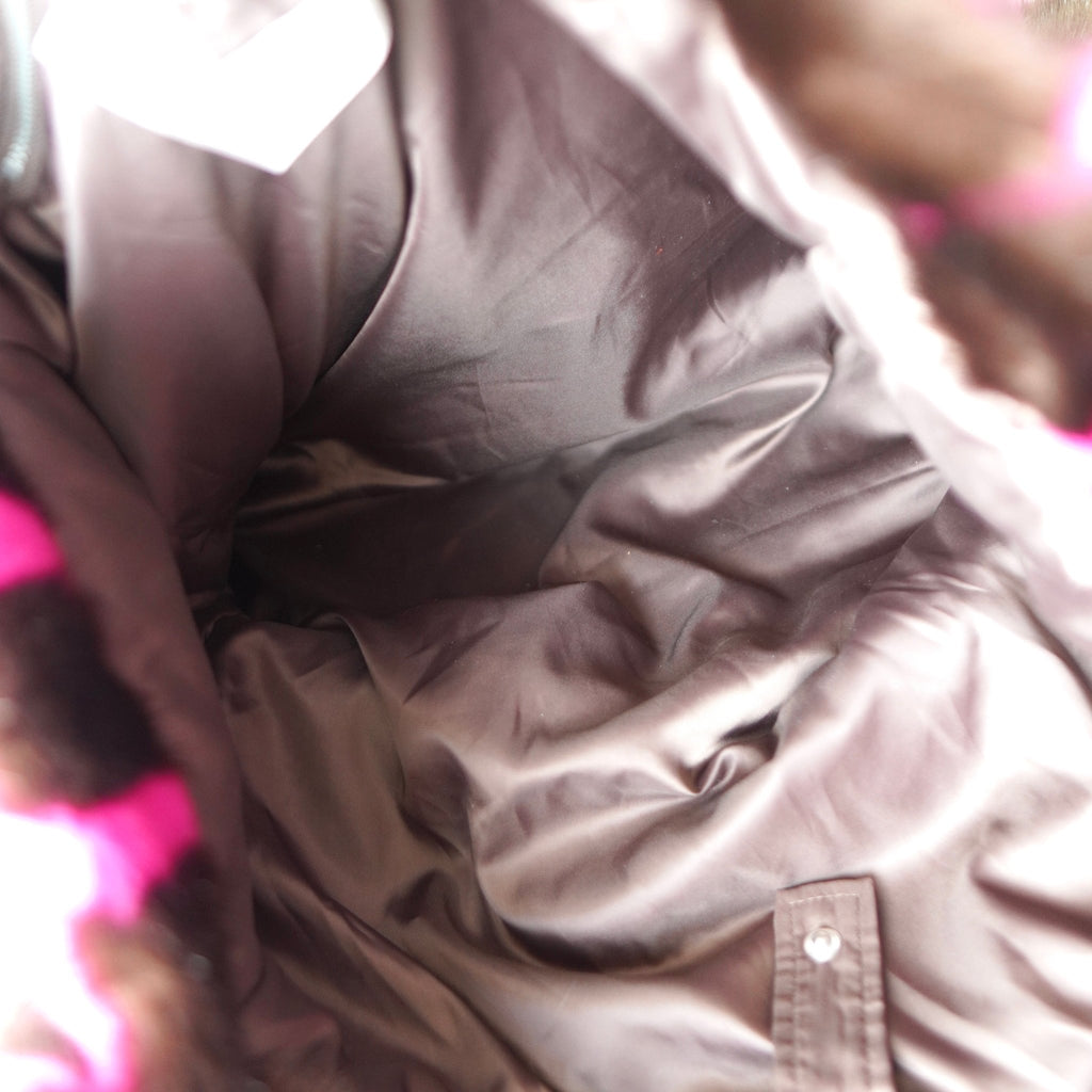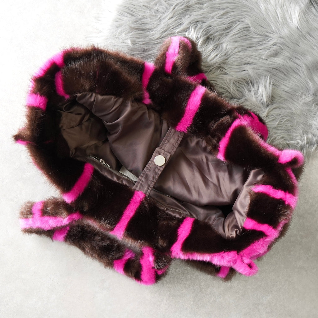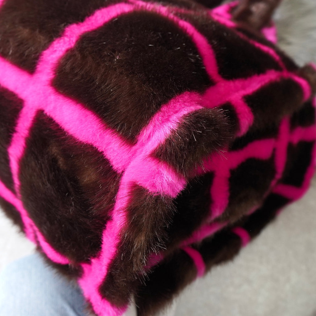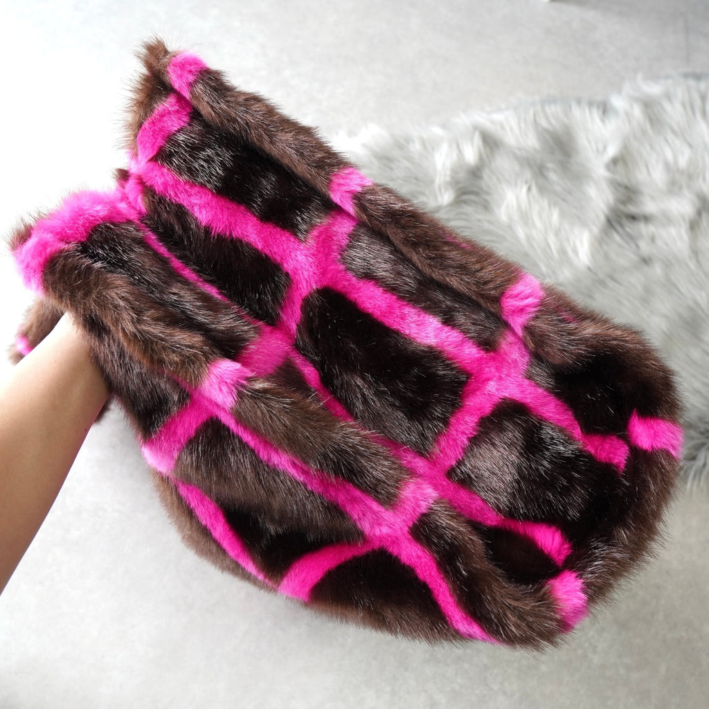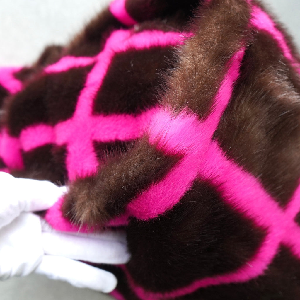 スタンド スタジオ 格子柄 ファー トートバッグ ハンドバッグ ブラウン / ピンク