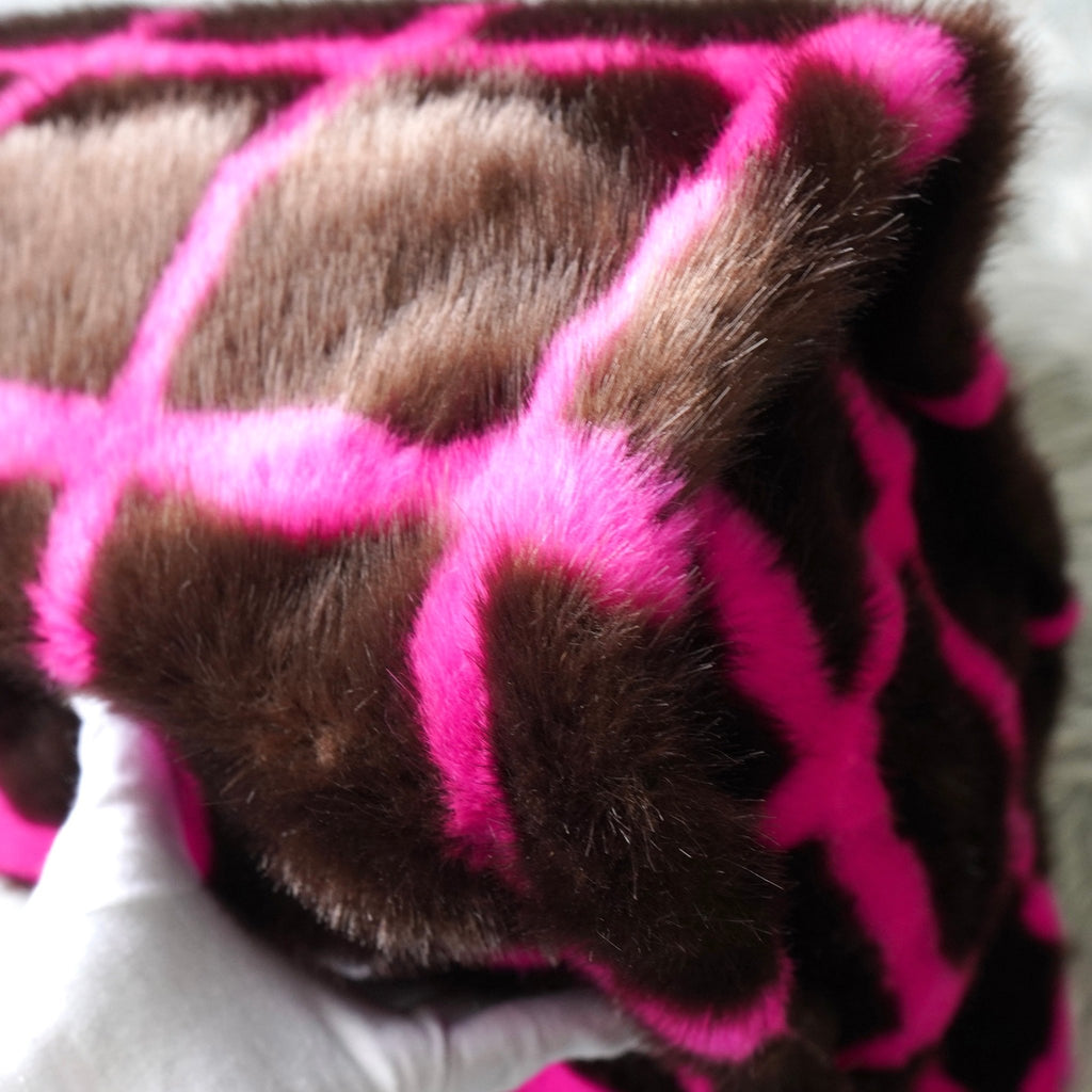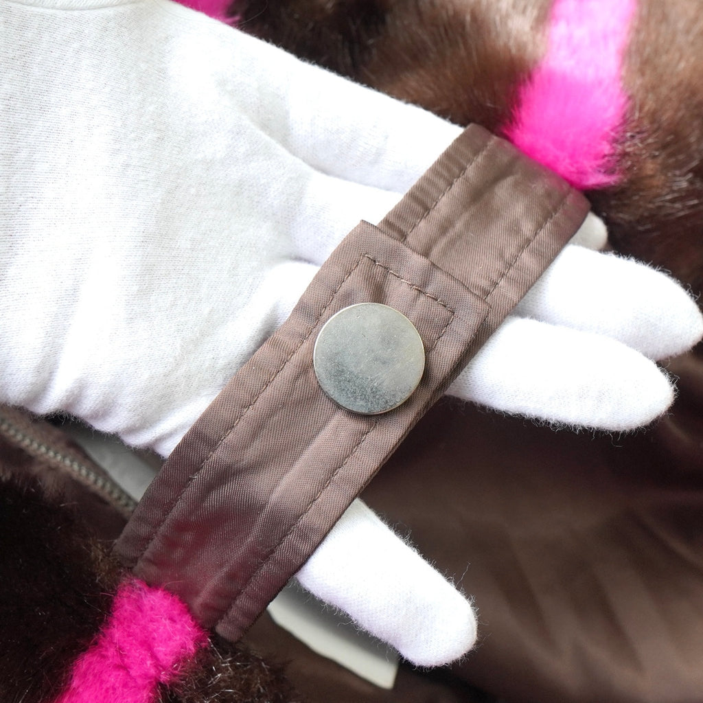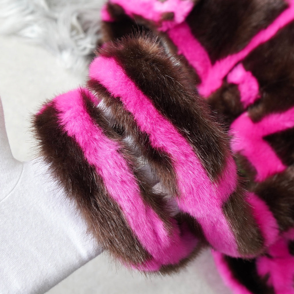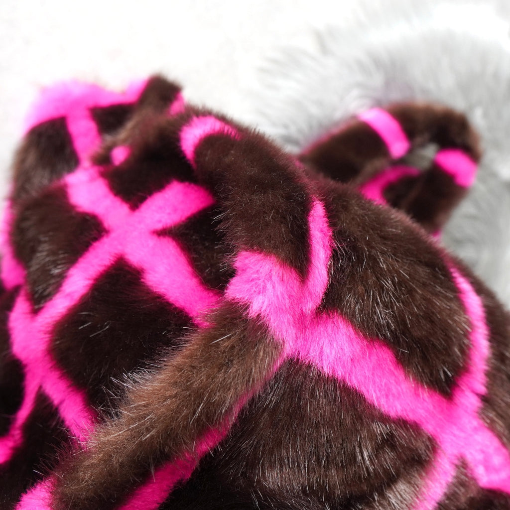 スタンド スタジオ 格子柄 ファー トートバッグ ハンドバッグ ブラウン / ピンク