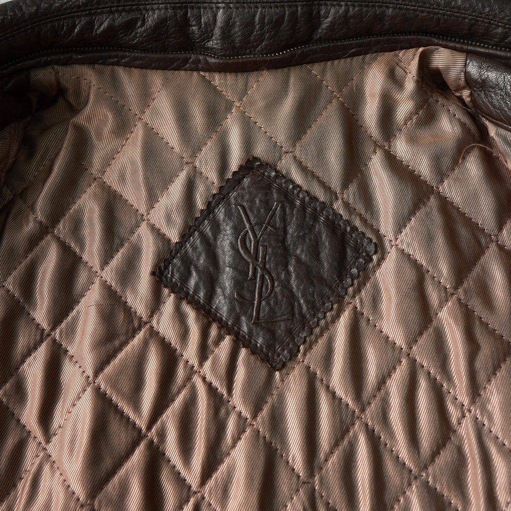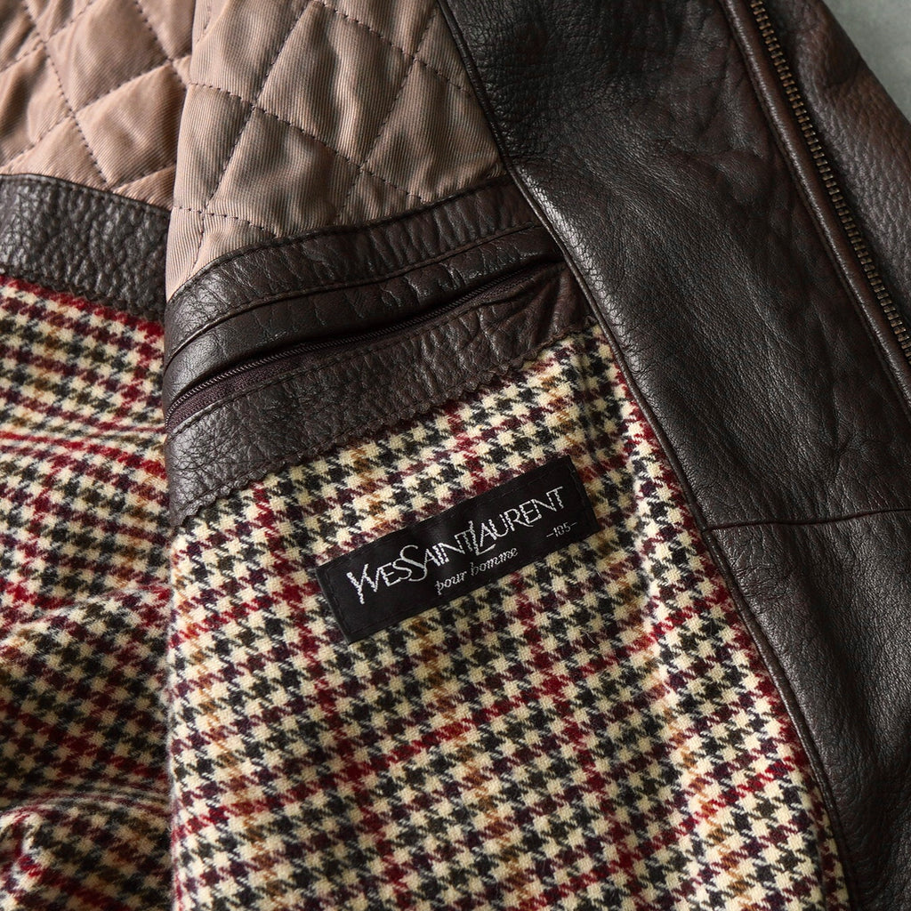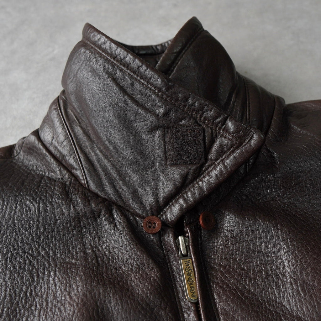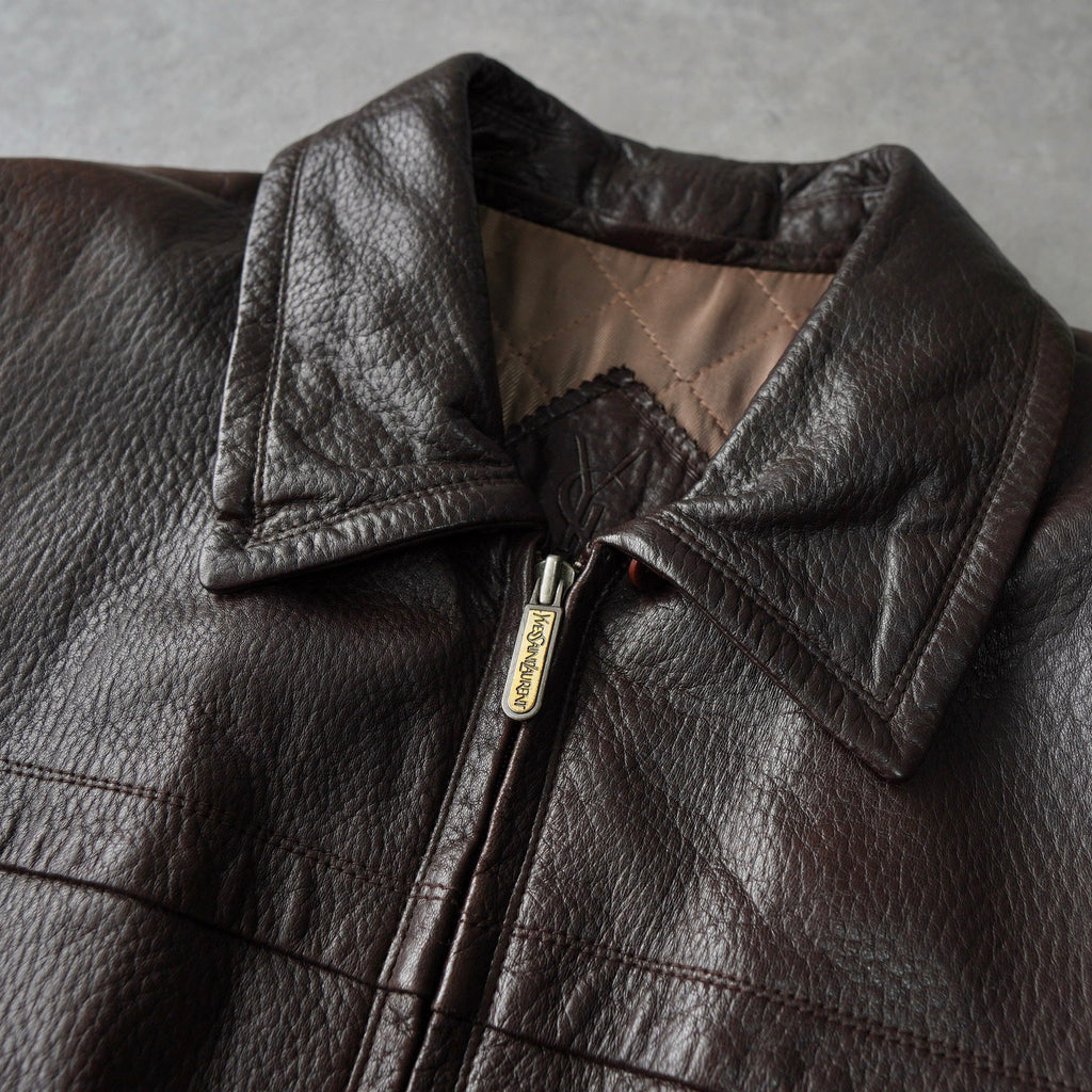 イヴ サンローラン 1990's YSLロゴ ジップアップ レザージャケット キルティング裏地 ダークブラウン