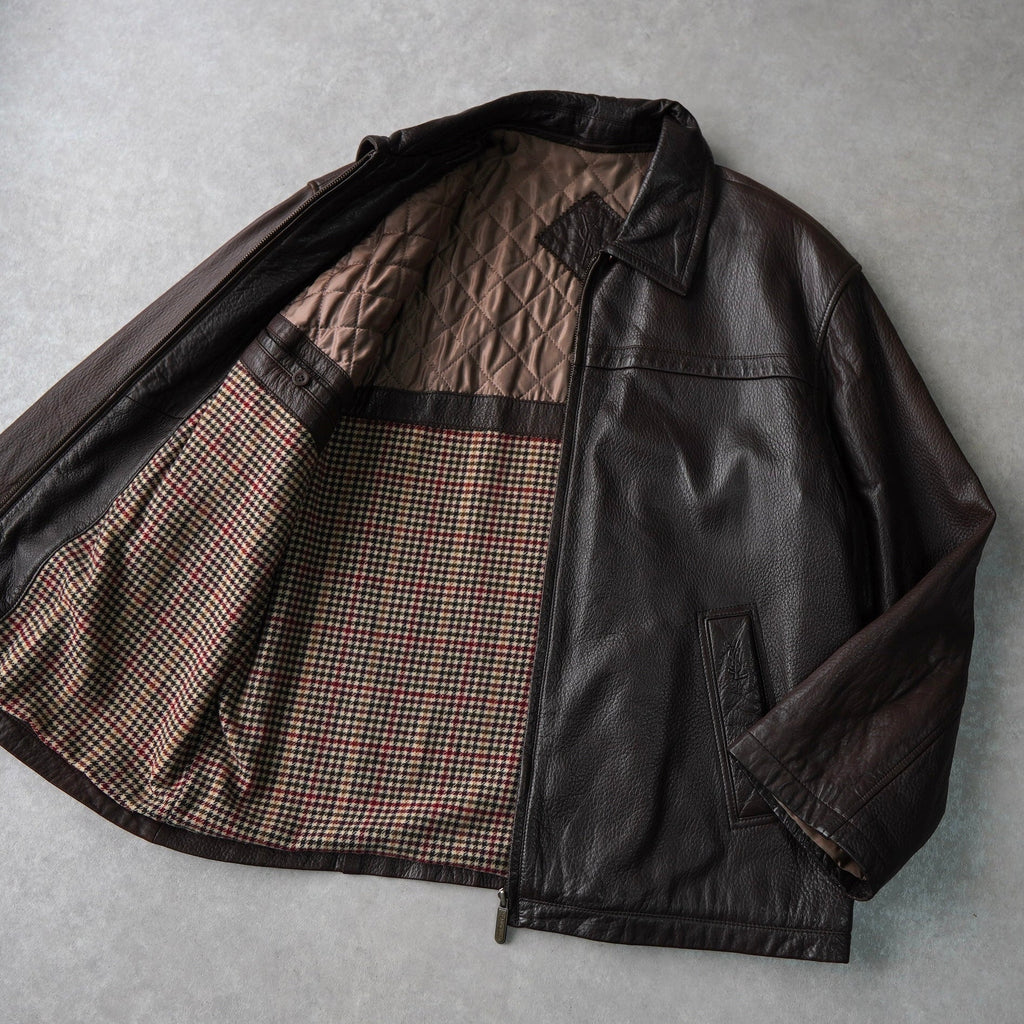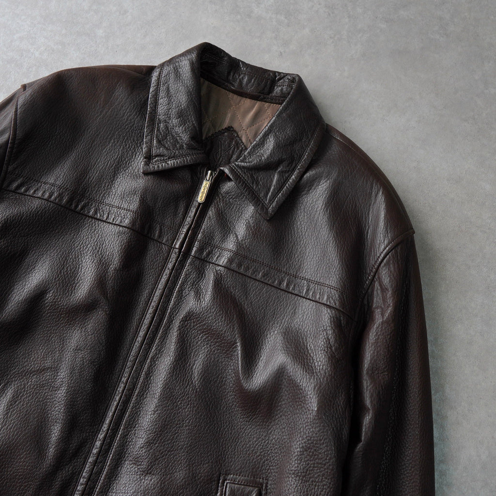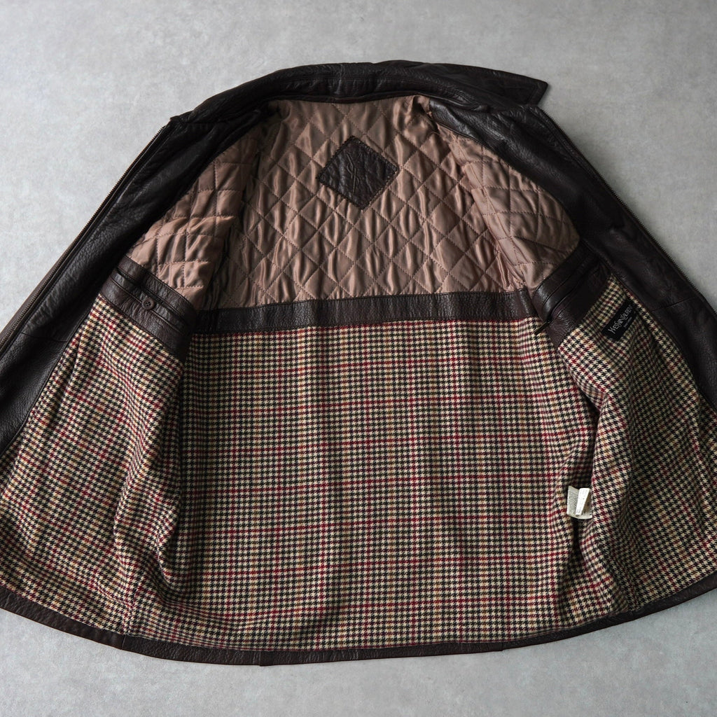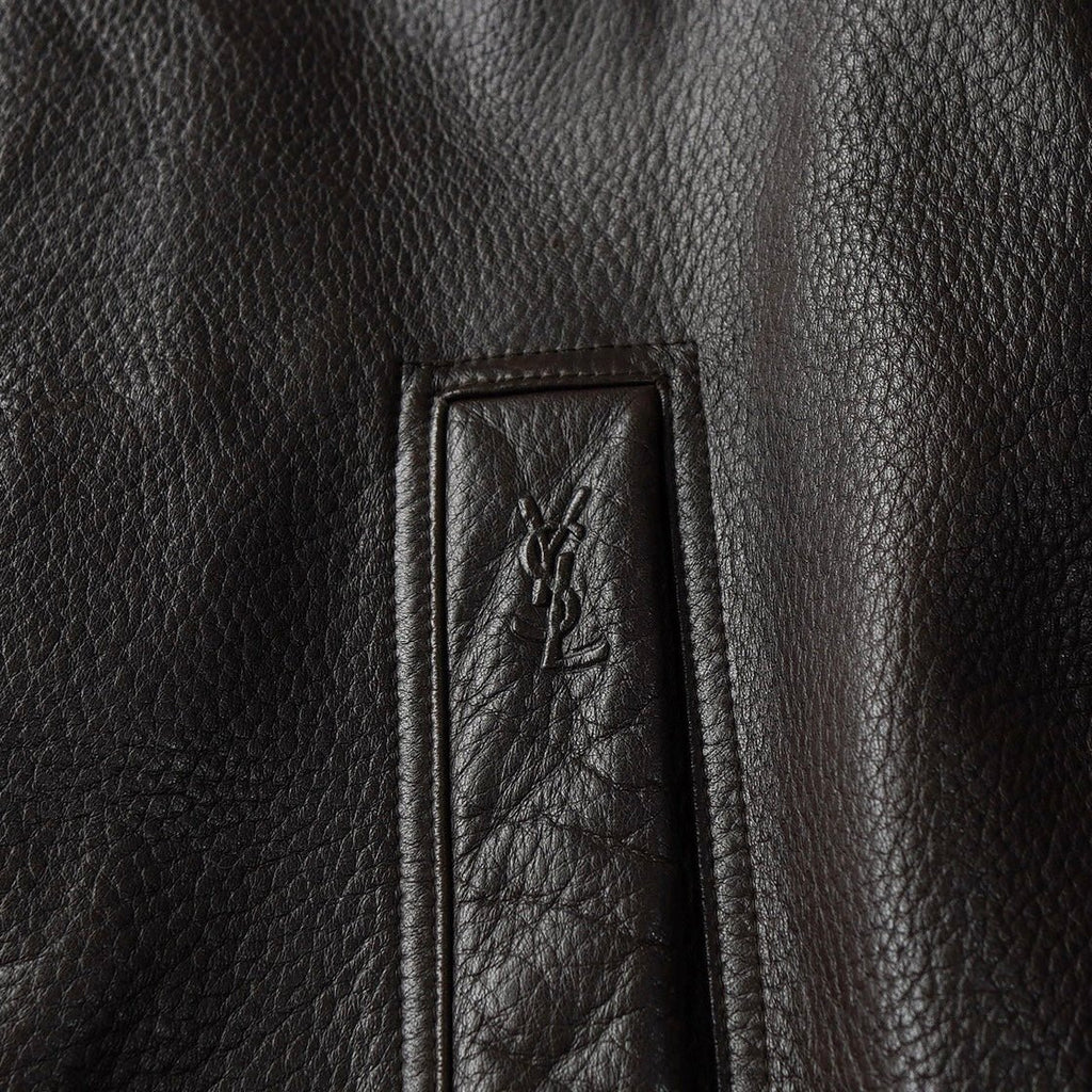 イヴ サンローラン 1990's YSLロゴ ジップアップ レザージャケット キルティング裏地 ダークブラウン